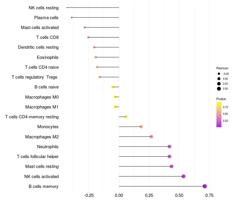 Relationship between gene expression and immune infiltrating cell level