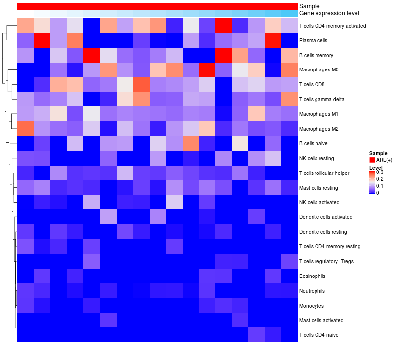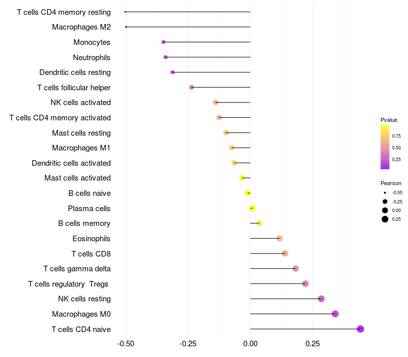 Relationship between gene expression and immune infiltrating cell level
