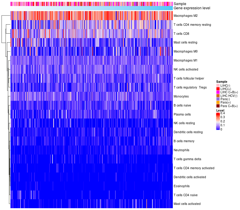 Relationship between gene expression and immune infiltrating cell level