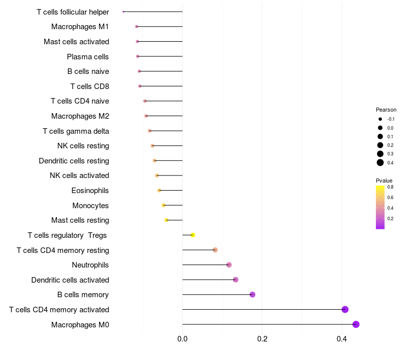 Lollipop of PRSS12 expression and immune infiltrating cell level correlation result in HBV+ samples