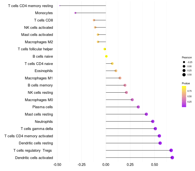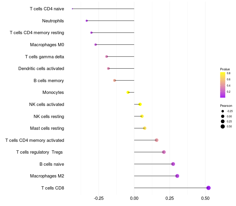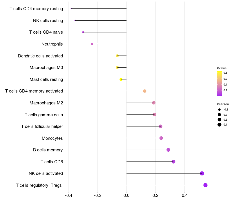 Lollipop of PSEN2 expression and immune infiltrating cell level correlation result in HTLV1+ samples
