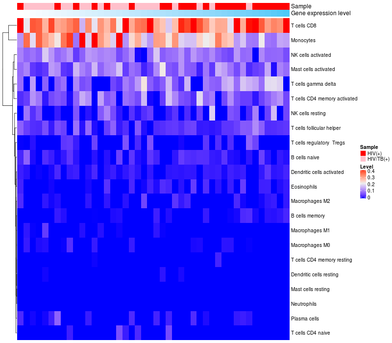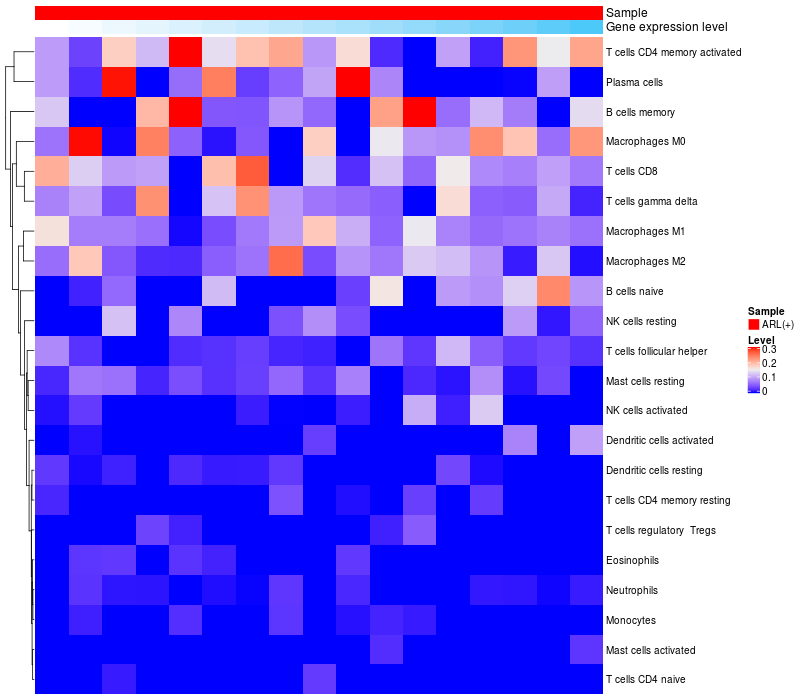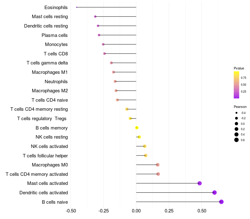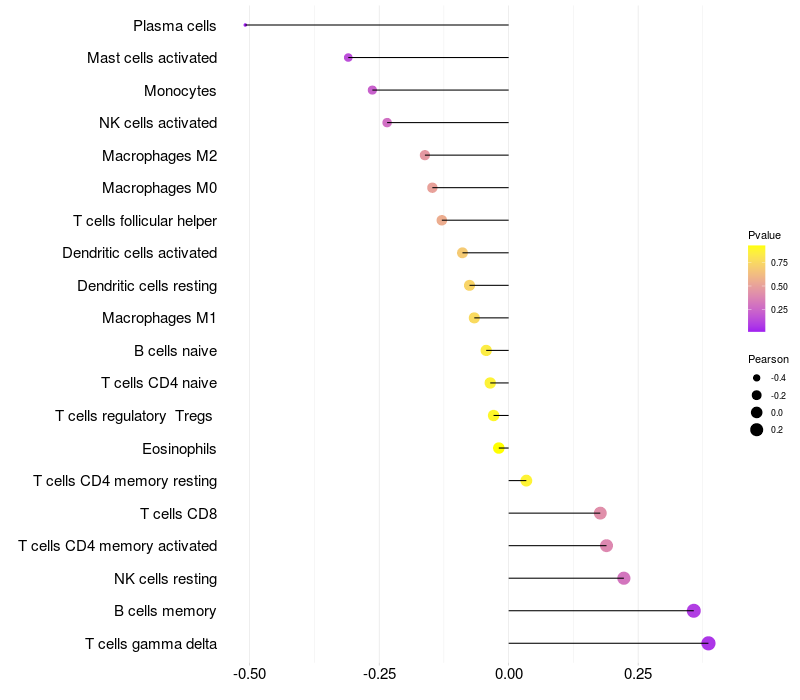 Relationship between gene expression and immune infiltrating cell level