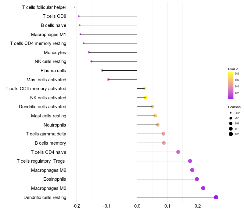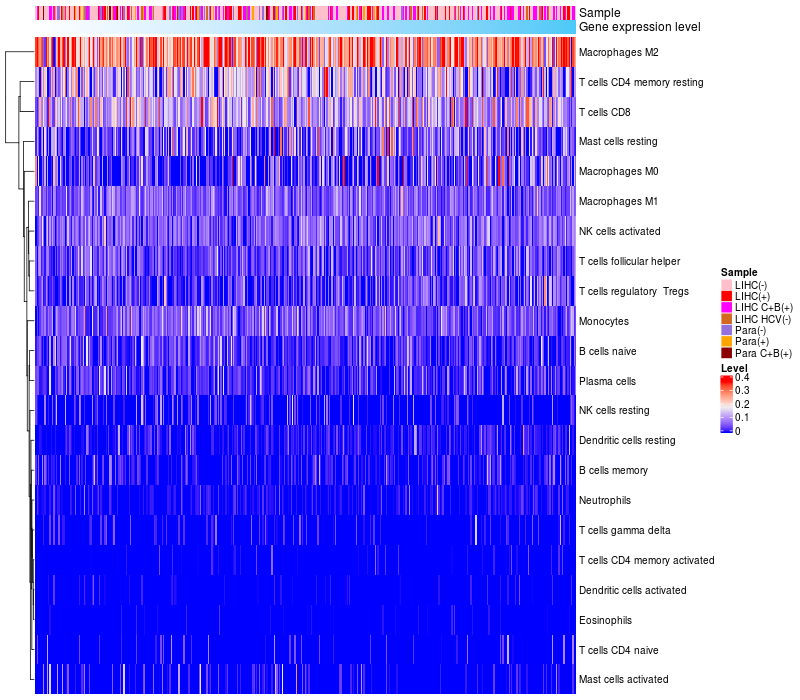 Relationship between gene expression and immune infiltrating cell level