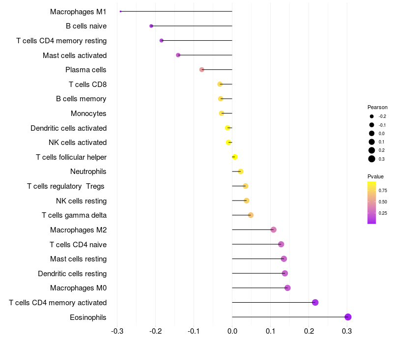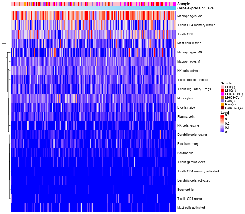Relationship between gene expression and immune infiltrating cell level