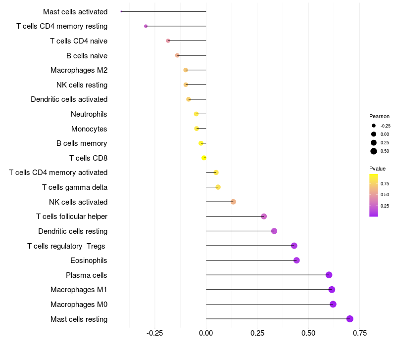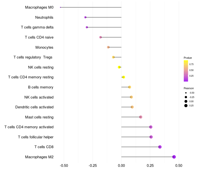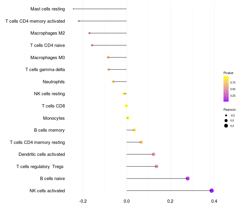 Lollipop of PSMD3 expression and immune infiltrating cell level correlation result in HTLV1+ samples