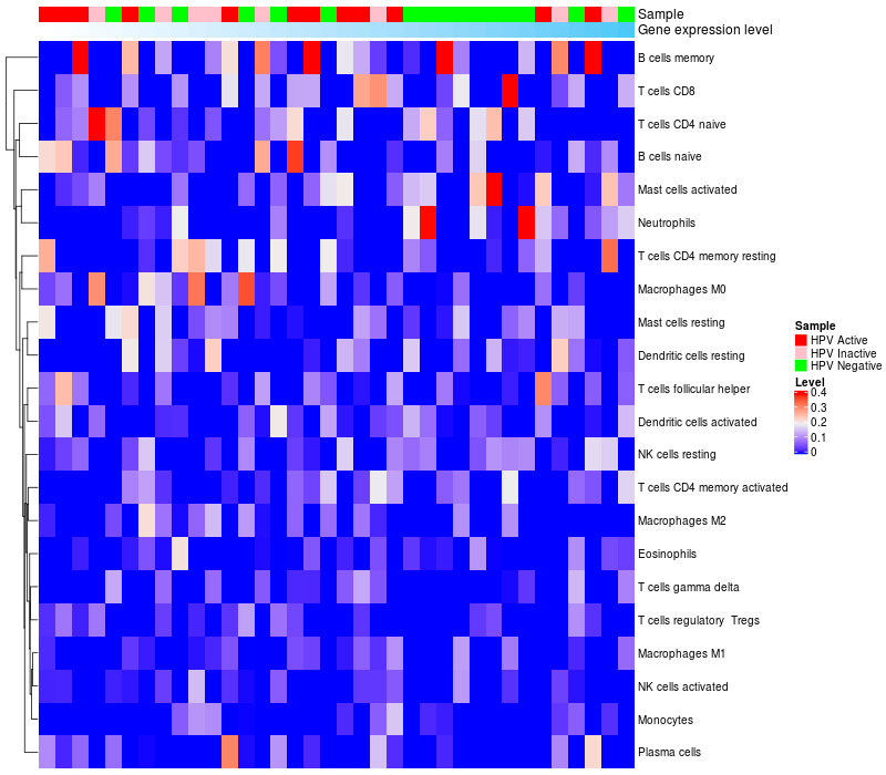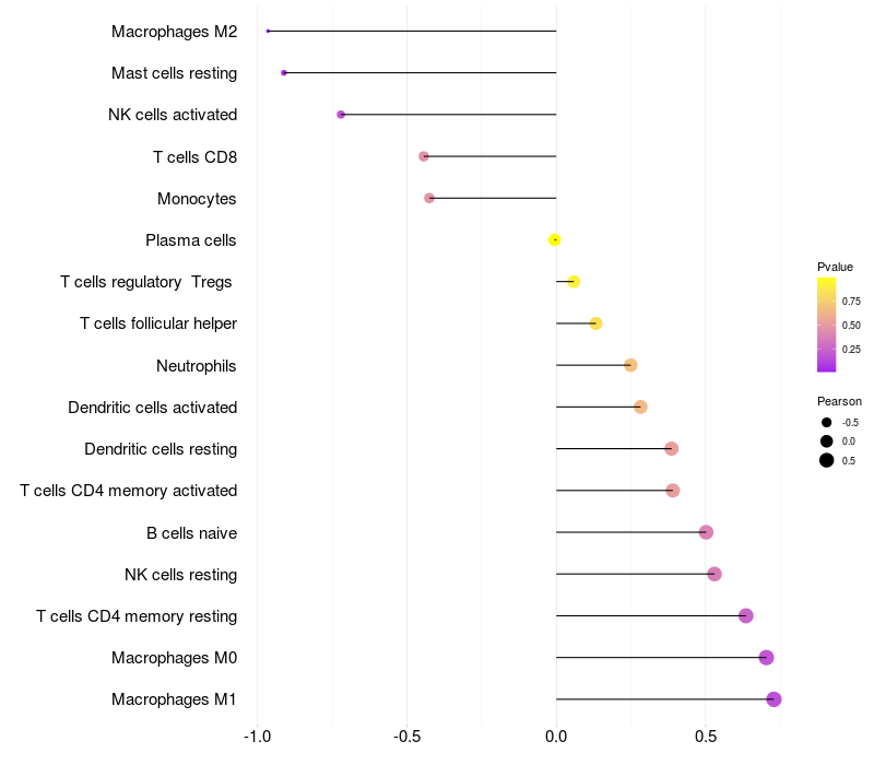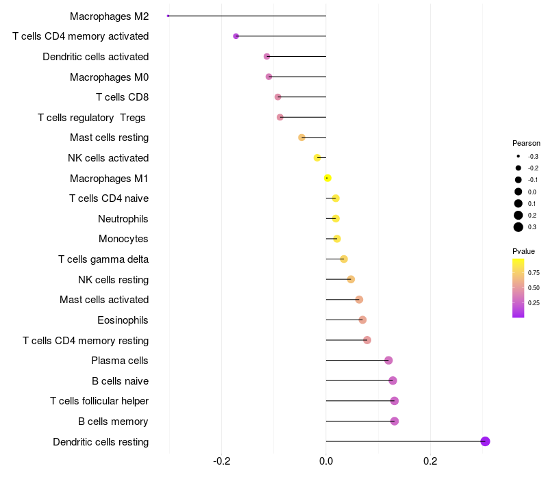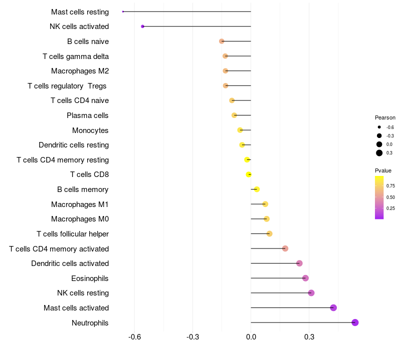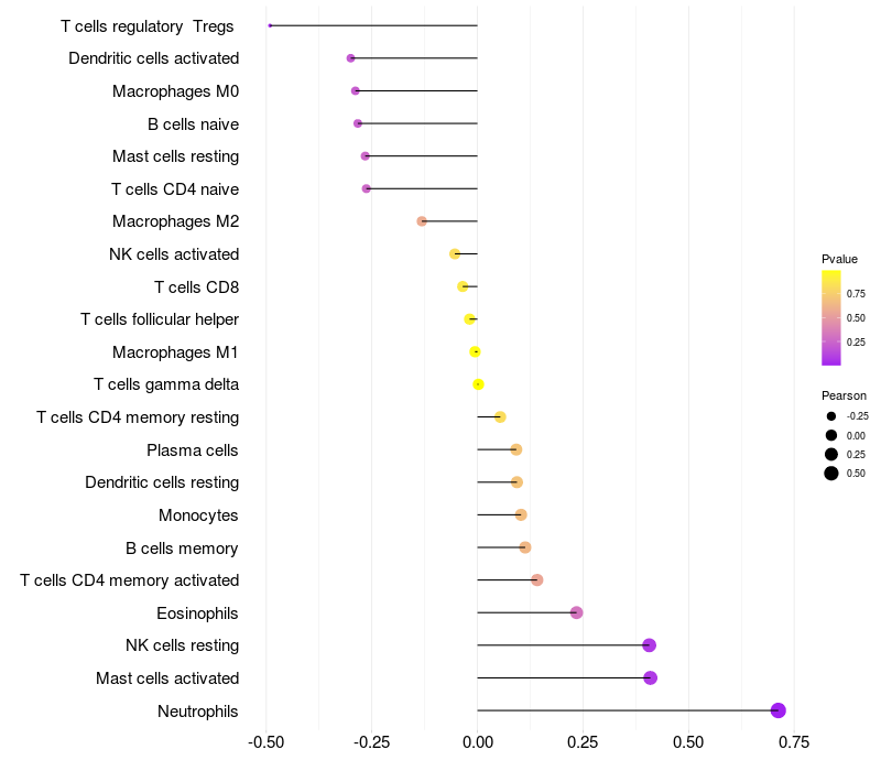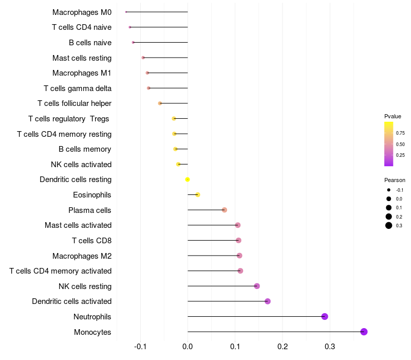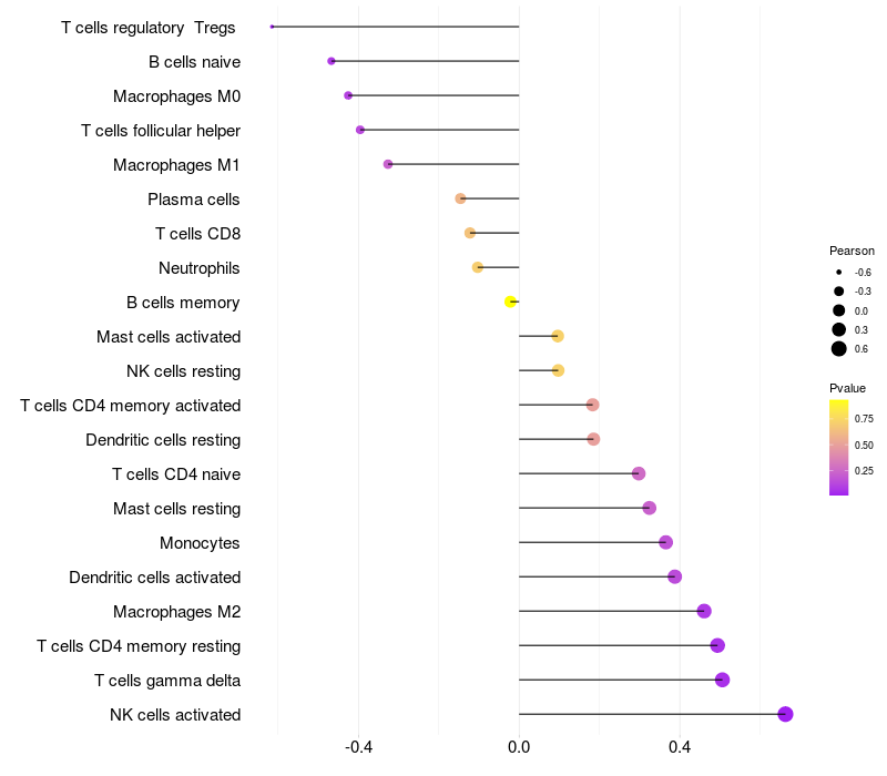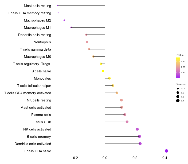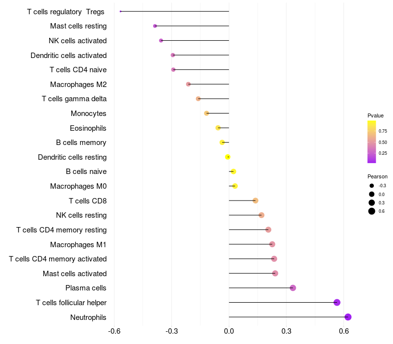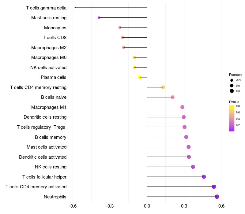 Lollipop of PSMD6 expression and immune infiltrating cell level correlation result in HPV+ samples
