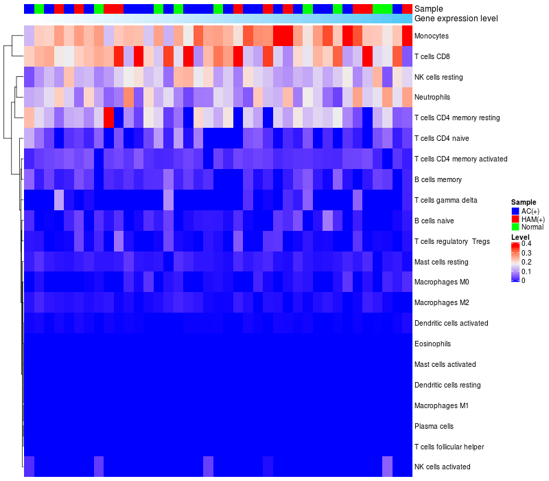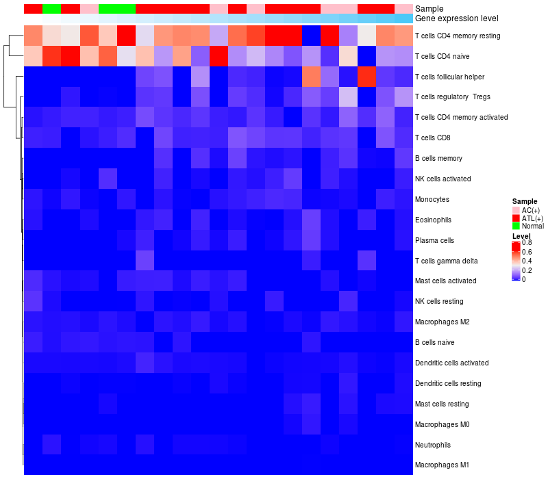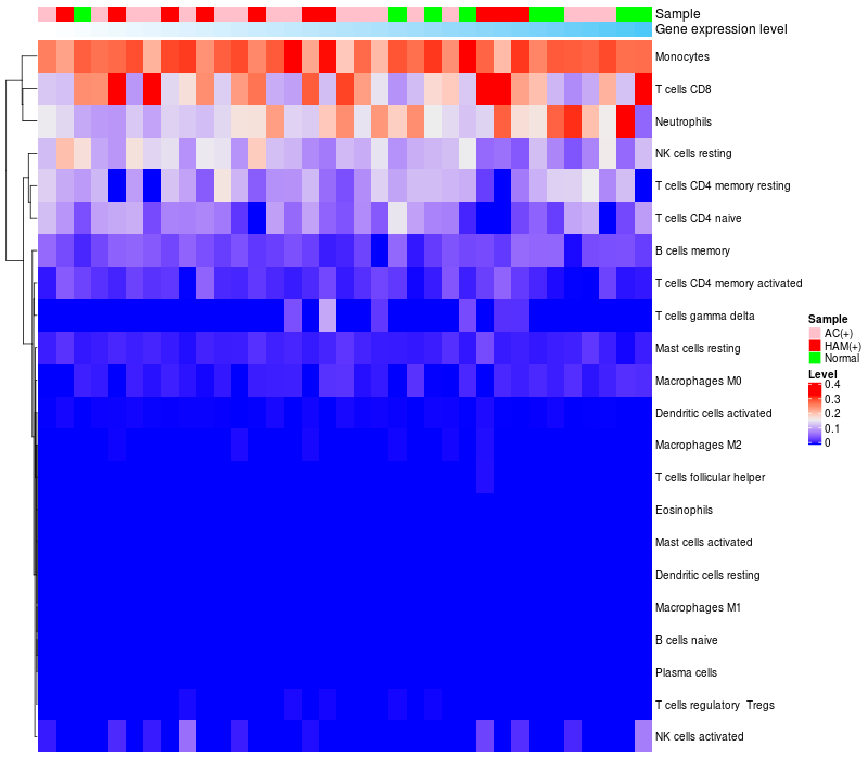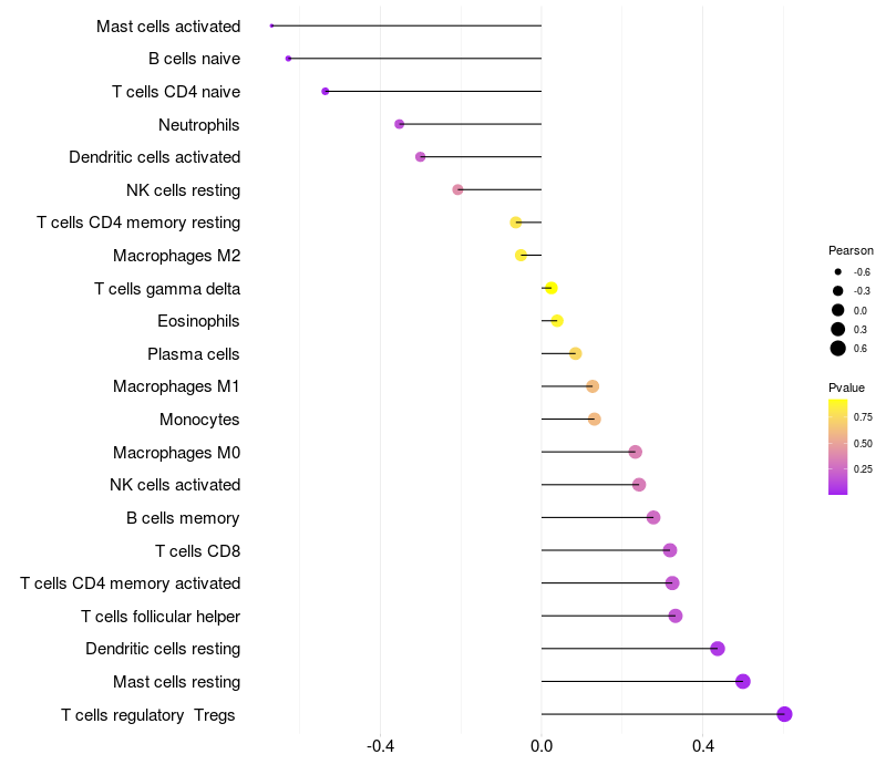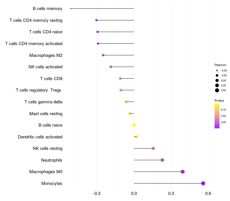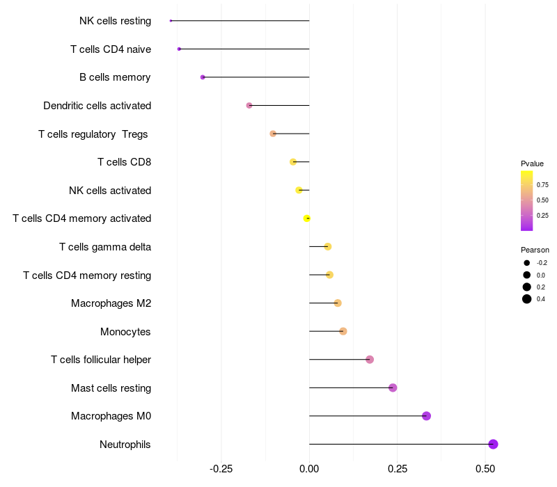 Lollipop of PSTPIP1 expression and immune infiltrating cell level correlation result in HTLV1+ samples