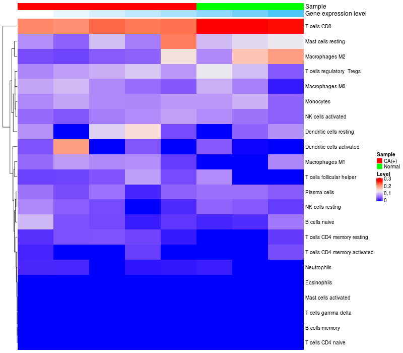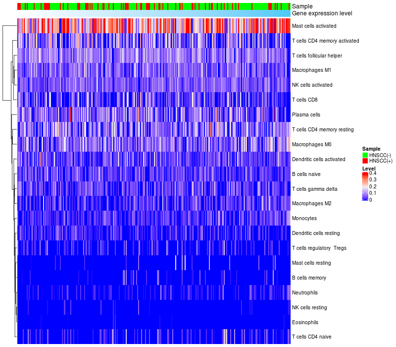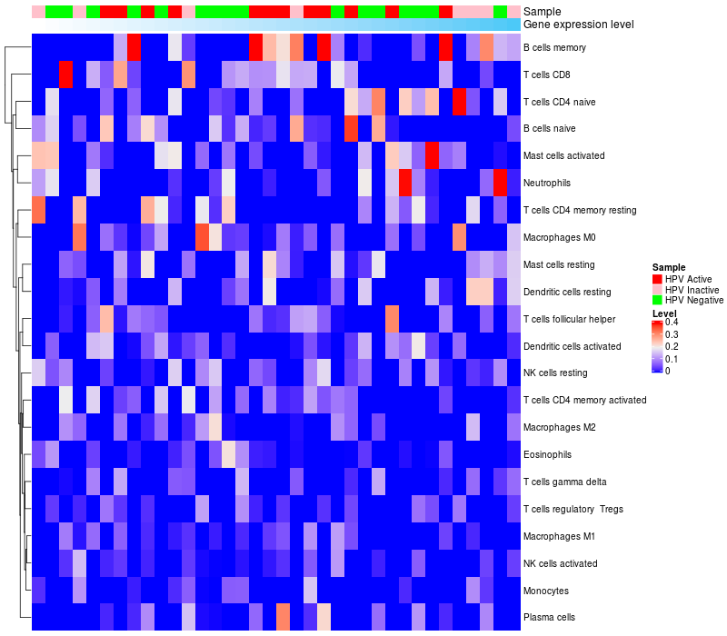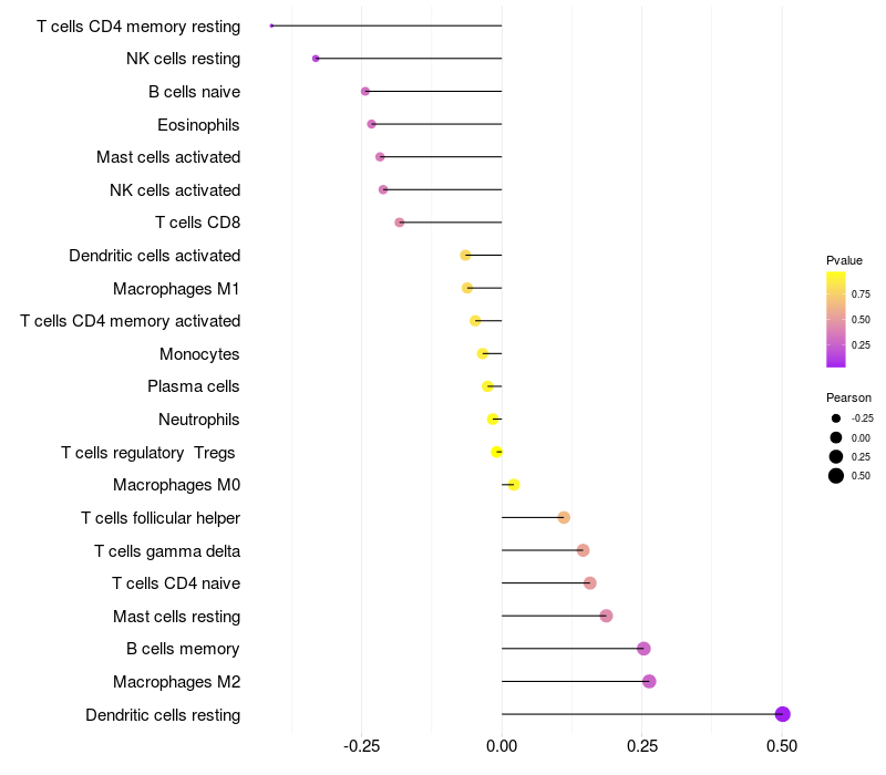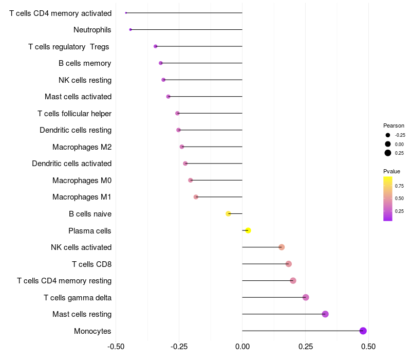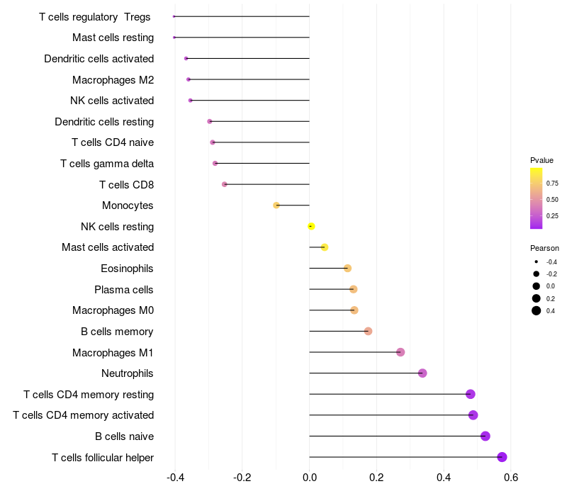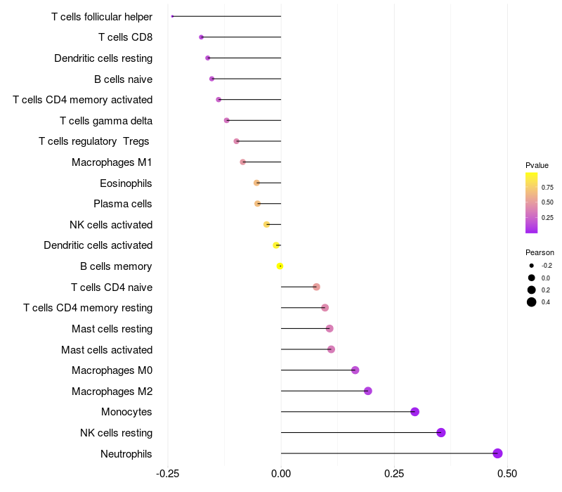 Lollipop of PTGFR expression and immune infiltrating cell level correlation result in HPV+ samples