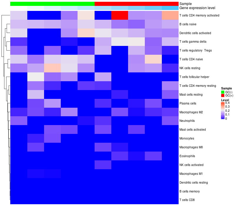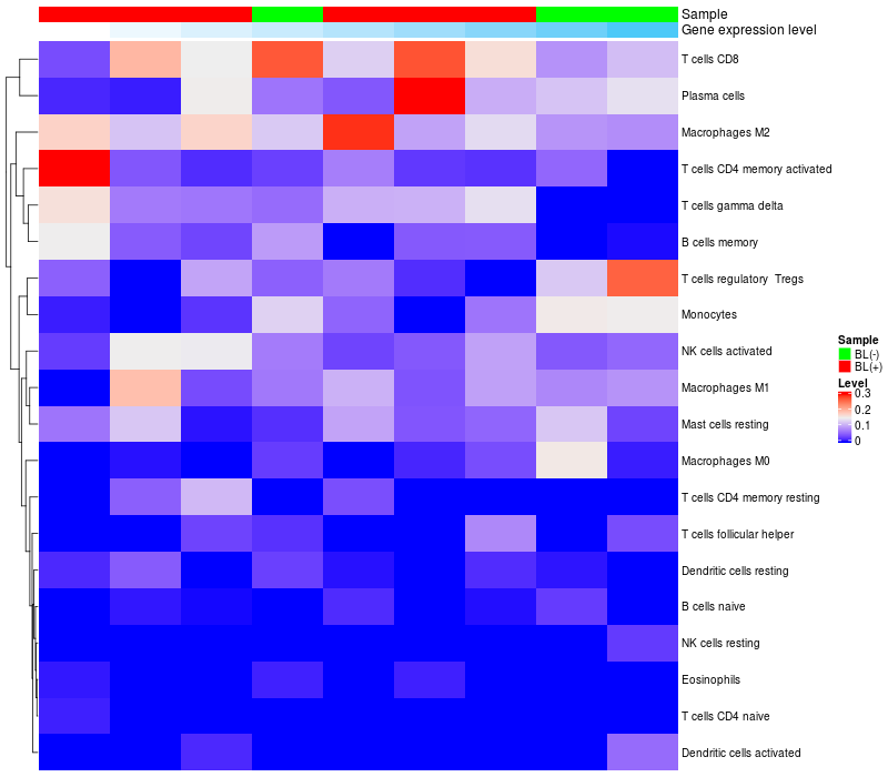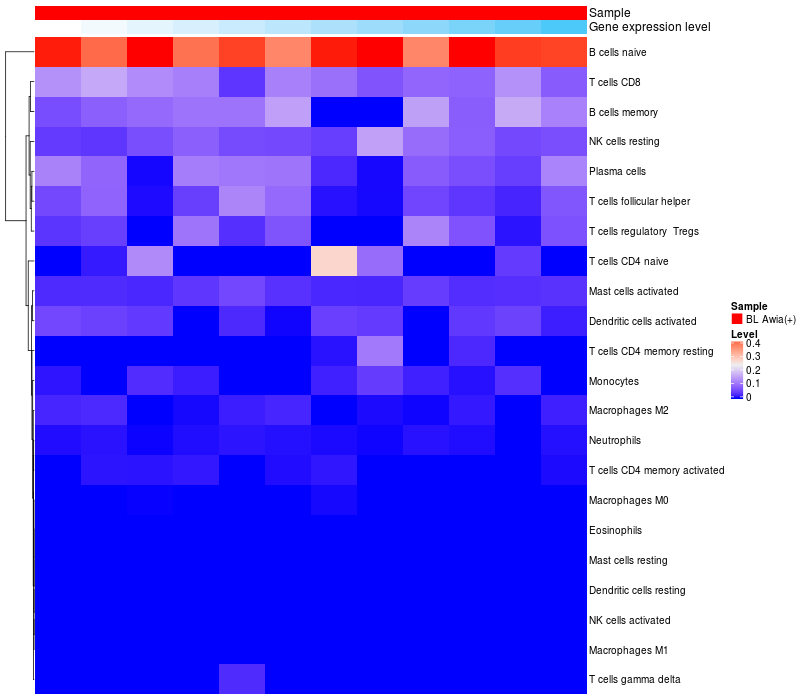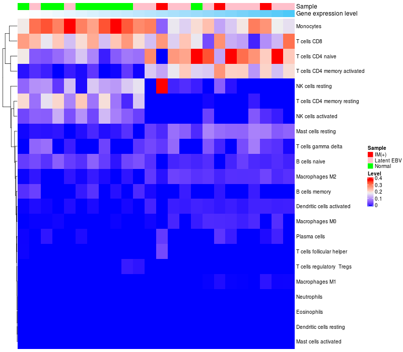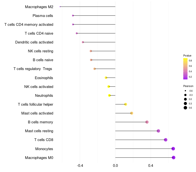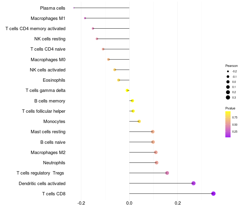 Lollipop of PTGFRN expression and immune infiltrating cell level correlation result in EBV+ samples