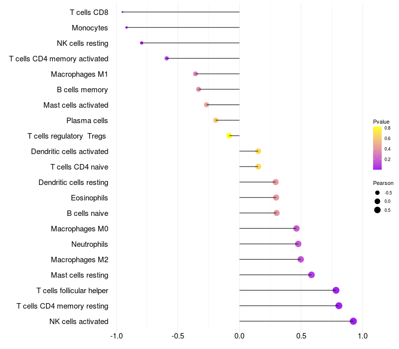 Lollipop of PTK2 expression and immune infiltrating cell level correlation result in HBV+ Liver cirrhosis samples
