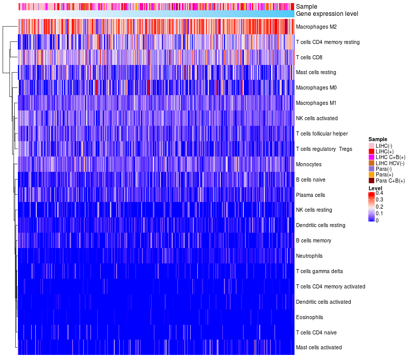 Relationship between gene expression and immune infiltrating cell level