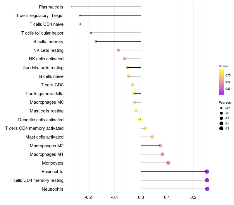 Lollipop of PTPN11 expression and immune infiltrating cell level correlation result in HBV+ samples
