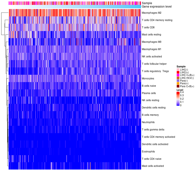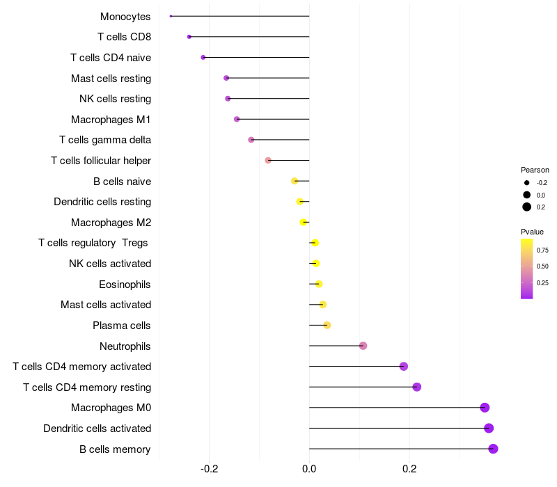Relationship between gene expression and immune infiltrating cell level