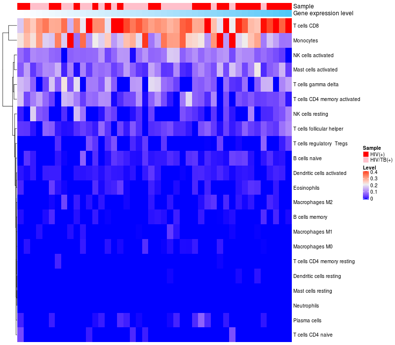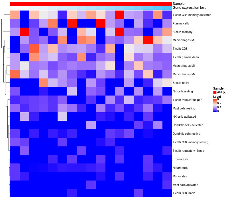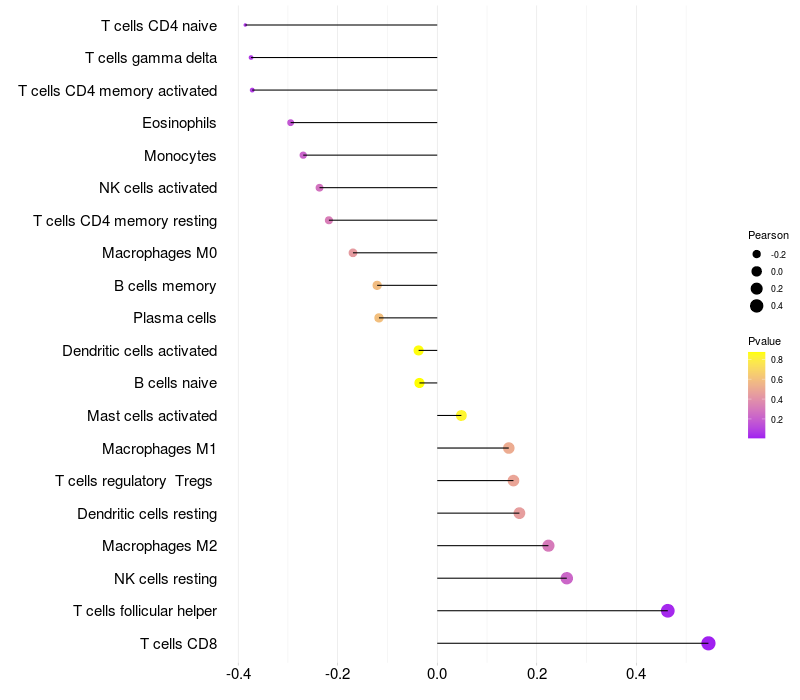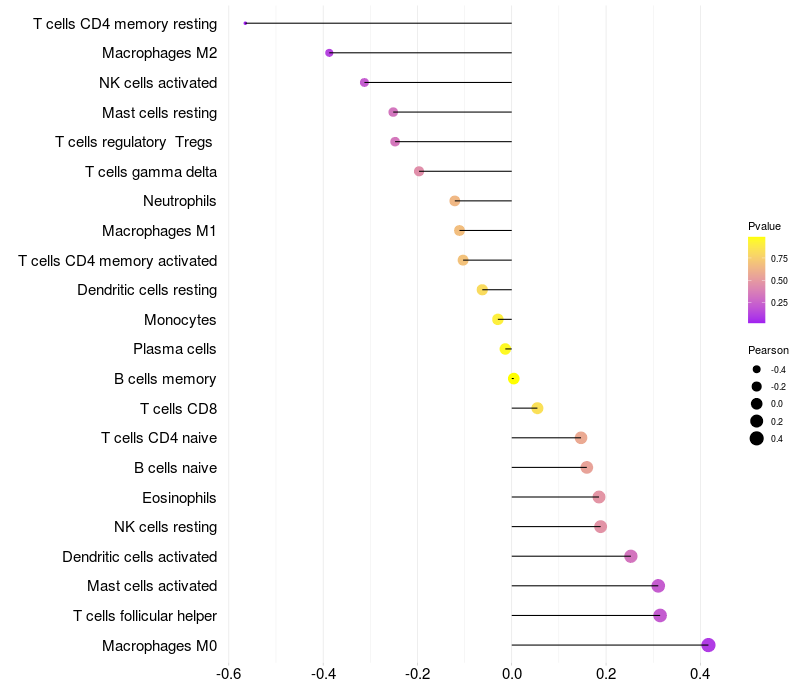 Relationship between gene expression and immune infiltrating cell level