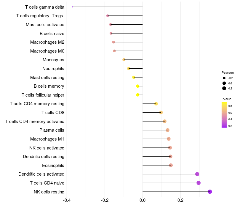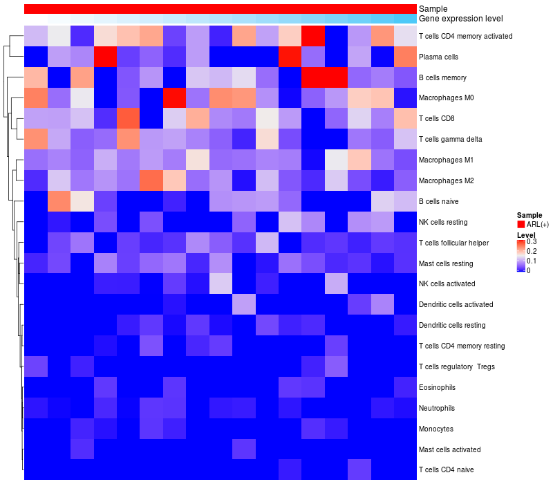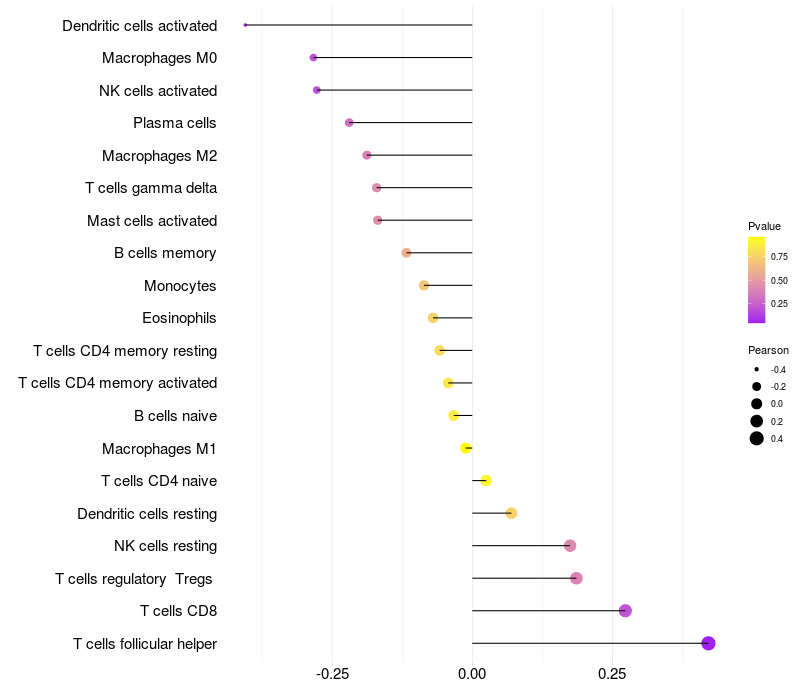 Relationship between gene expression and immune infiltrating cell level