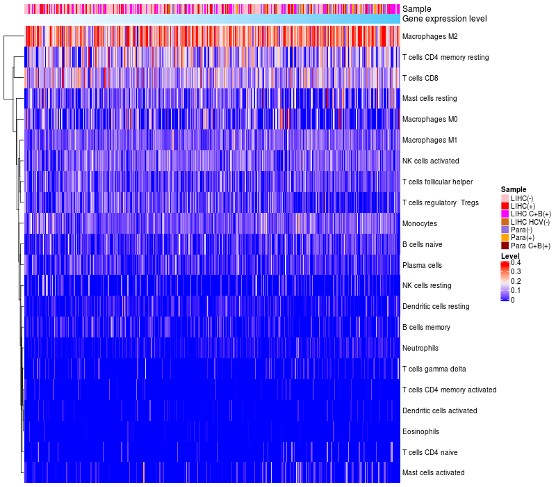 Relationship between gene expression and immune infiltrating cell level