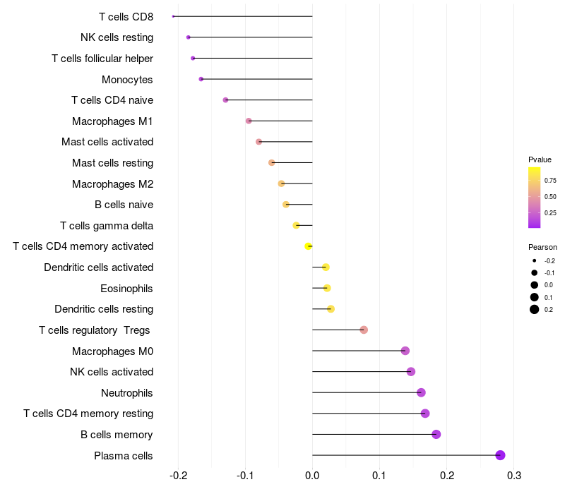 Lollipop of PTPRM expression and immune infiltrating cell level correlation result in HBV+ samples