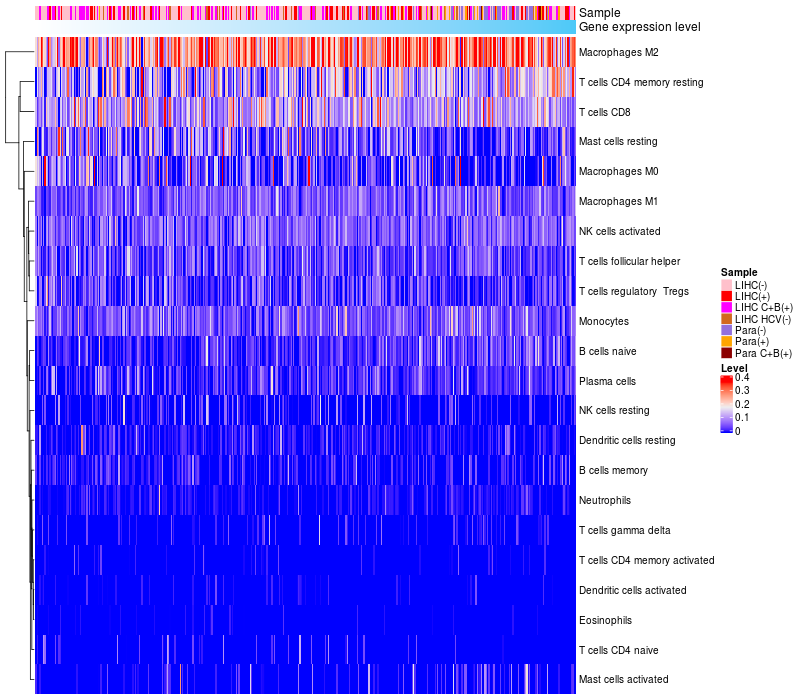 Relationship between gene expression and immune infiltrating cell level
