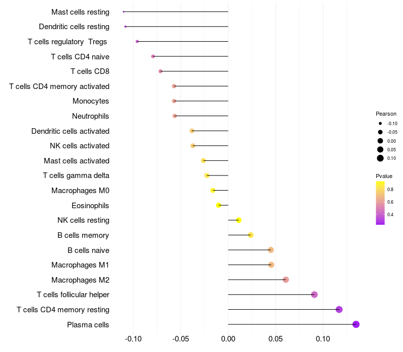 Lollipop of PTPRN2 expression and immune infiltrating cell level correlation result in HBV+ samples
