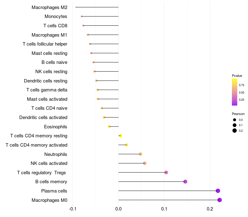 Lollipop of PTPRR expression and immune infiltrating cell level correlation result in HBV+ samples