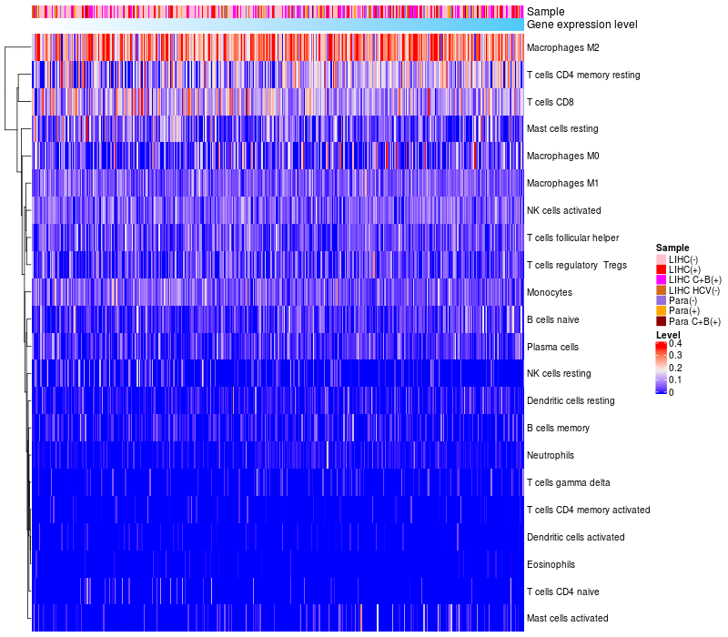 Relationship between gene expression and immune infiltrating cell level