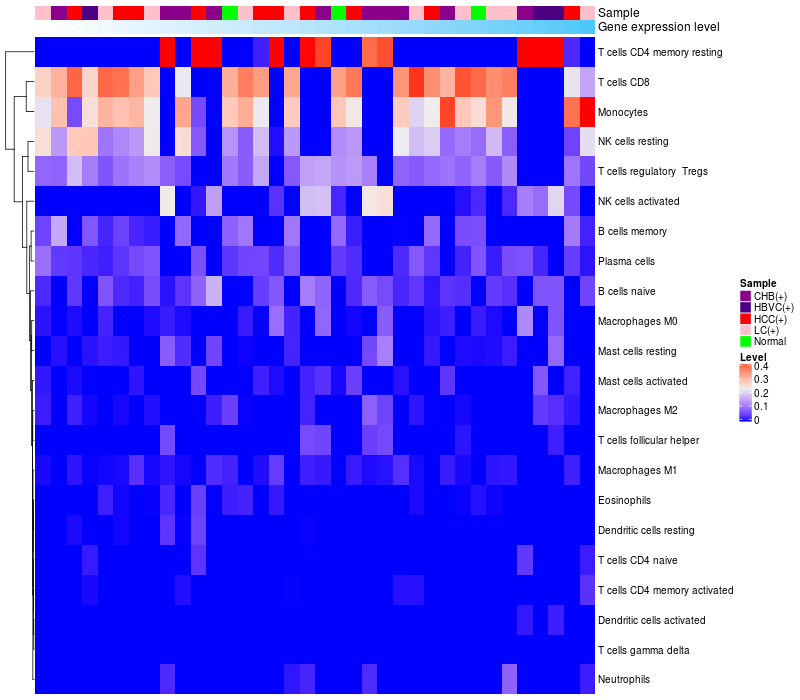 Liver hepatocellular carcinoma HCV (HBV+)(86), Liver hepatocellular carcinoma HCV (HBV-)(19), Liver hepatocellular carcinoma (HBV+)(209), Liver hepatocellular carcinoma (HBV+)(60), Paracancerous HCV (HBV+)(4), Paracancerous (HBV-)(28), Paracancerous (HBV+)(18) |