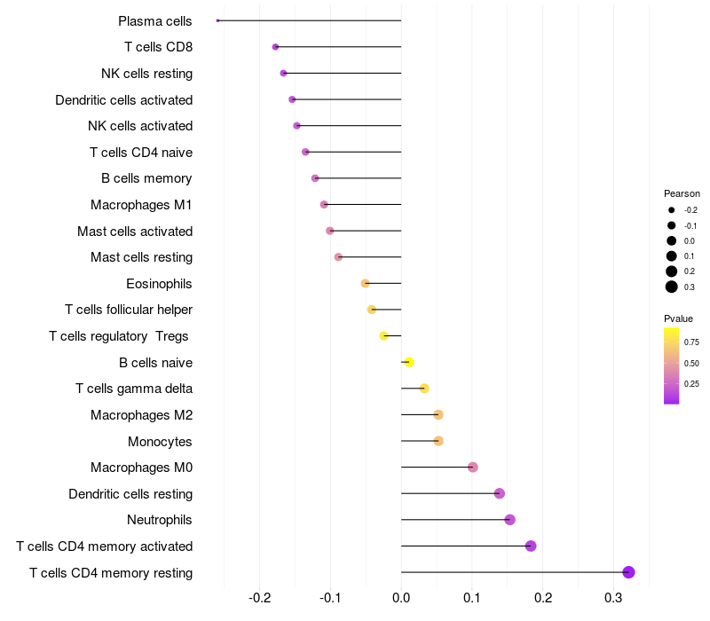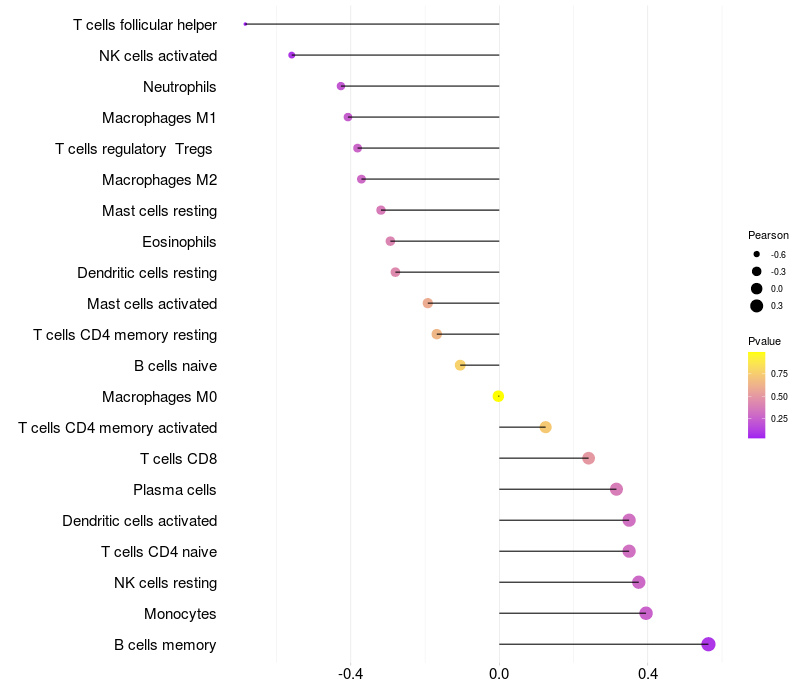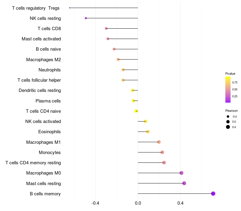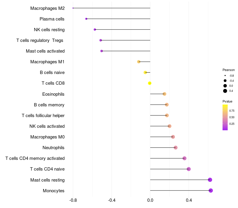 Lollipop of PXK expression and immune infiltrating cell level correlation result in HBV+ Liver cirrhosis samples