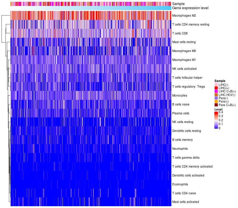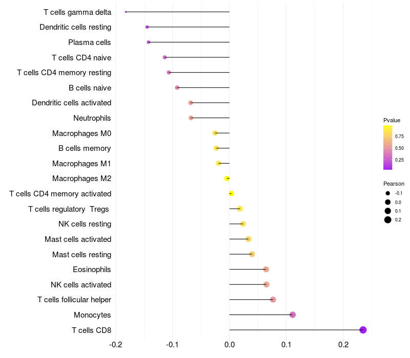 Relationship between gene expression and immune infiltrating cell level
