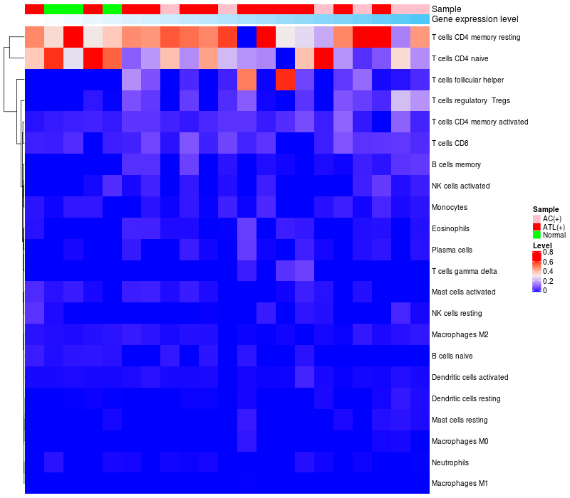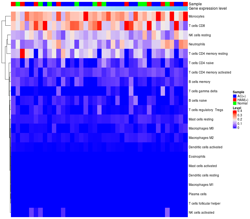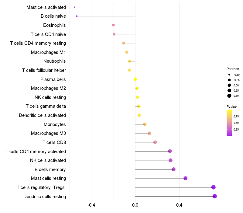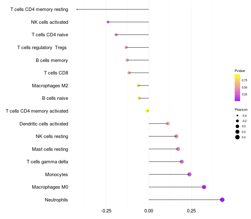 Relationship between gene expression and immune infiltrating cell level