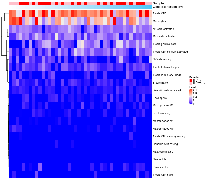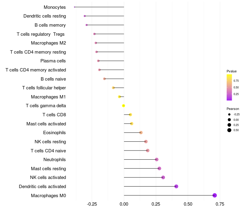 Relationship between gene expression and immune infiltrating cell level