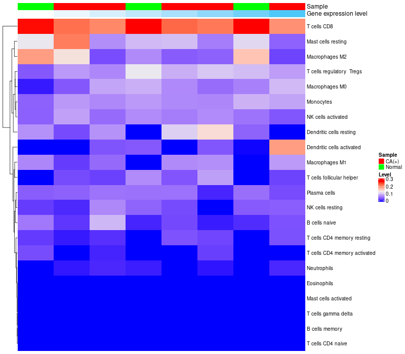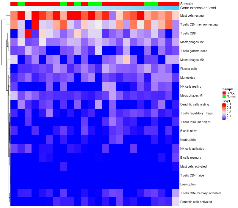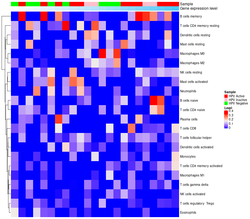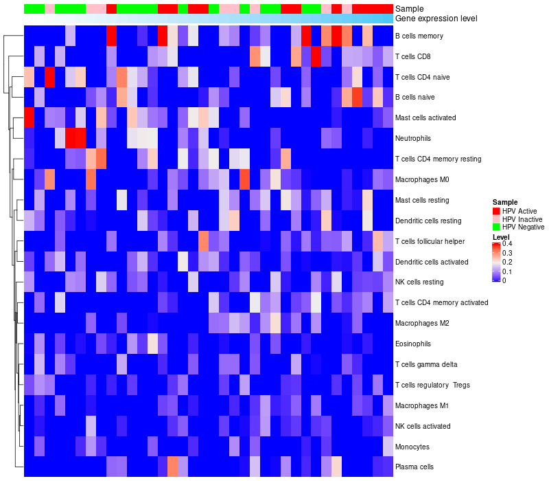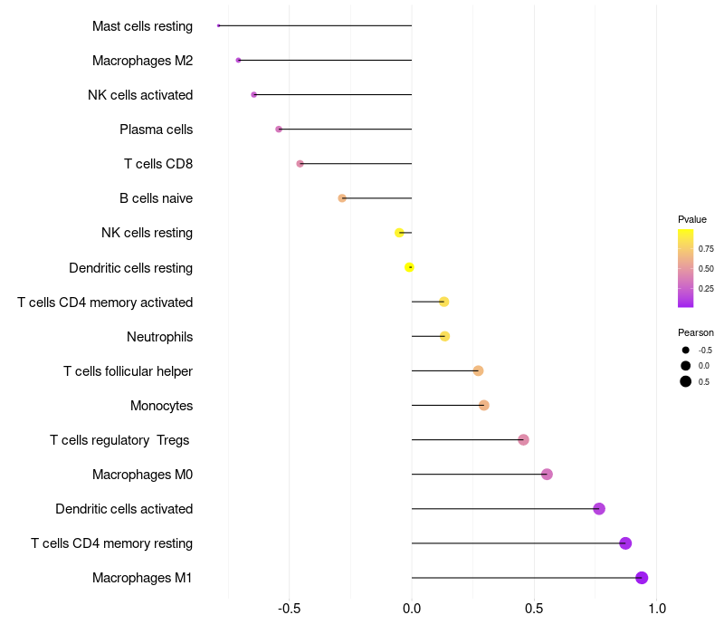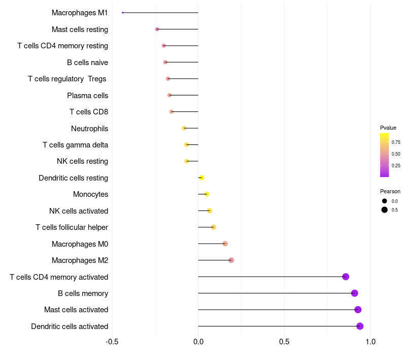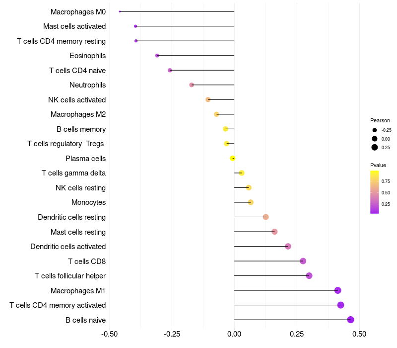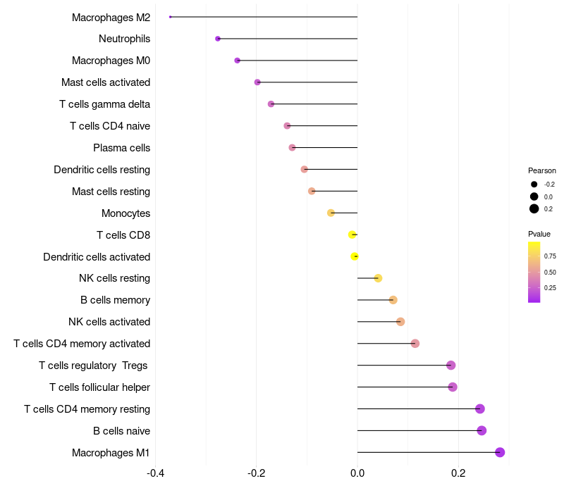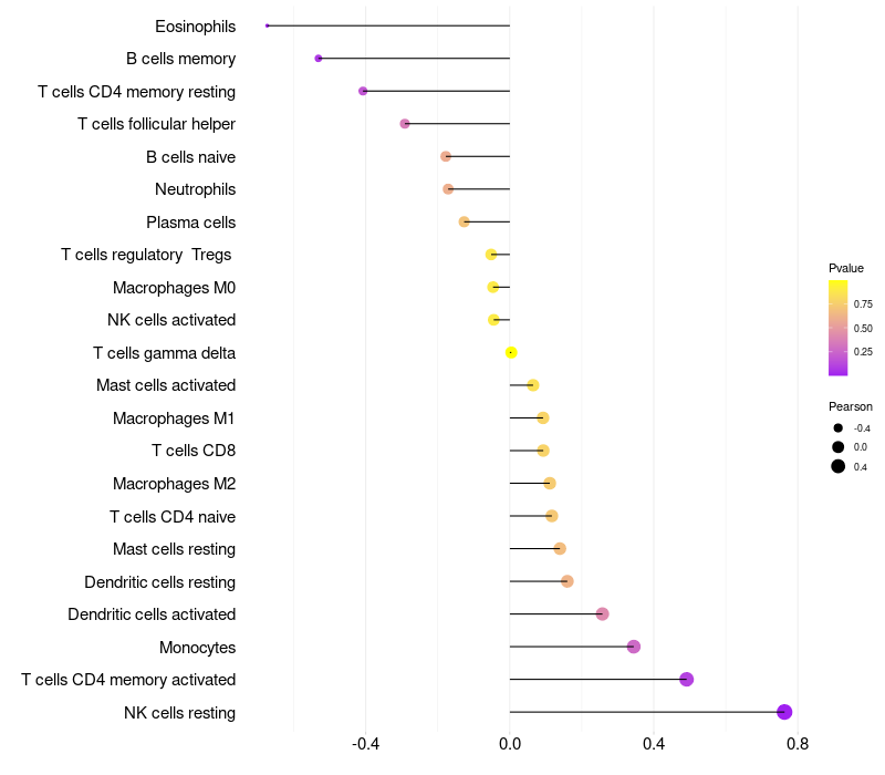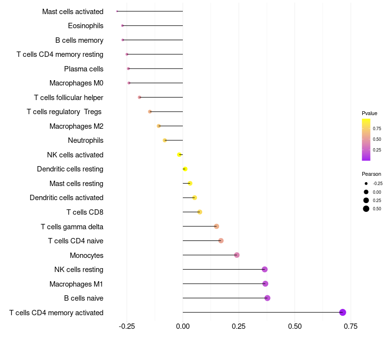 Lollipop of RAB19 expression and immune infiltrating cell level correlation result in HPV+ samples