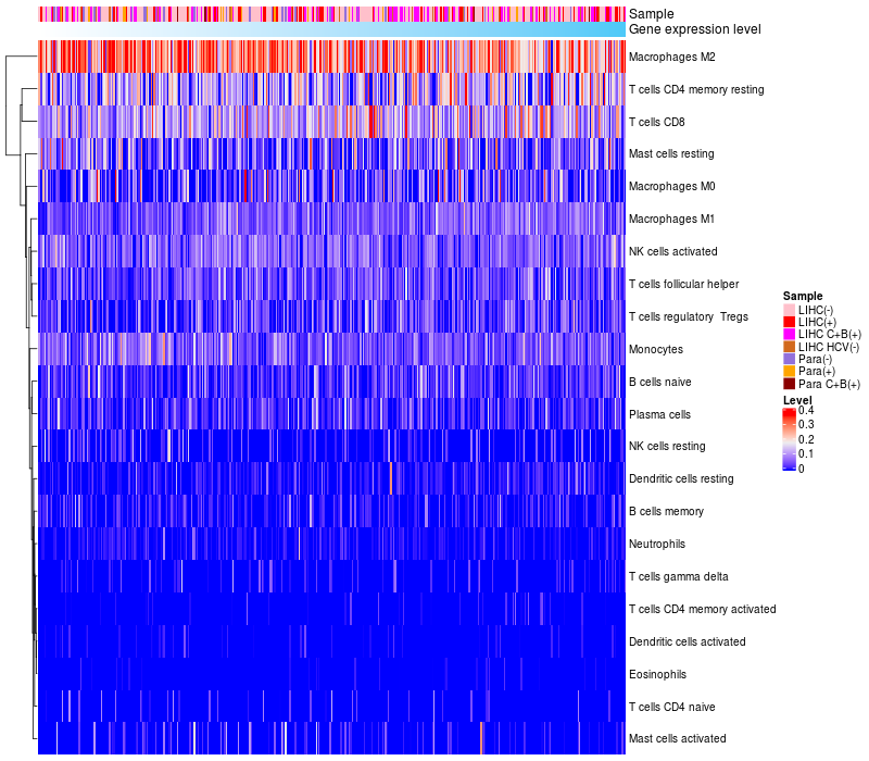 Relationship between gene expression and immune infiltrating cell level
