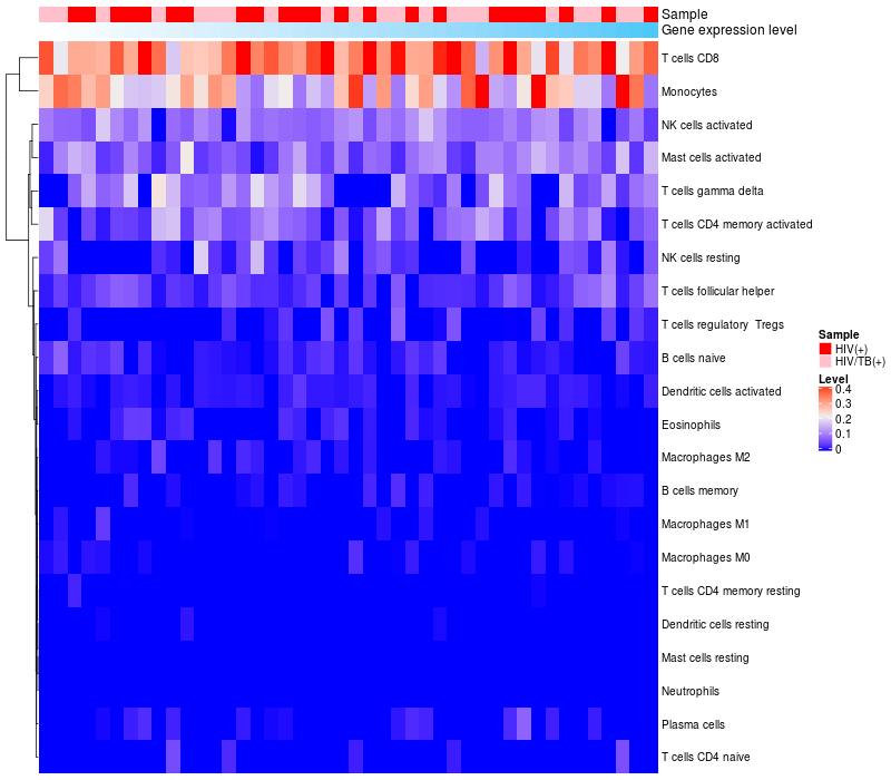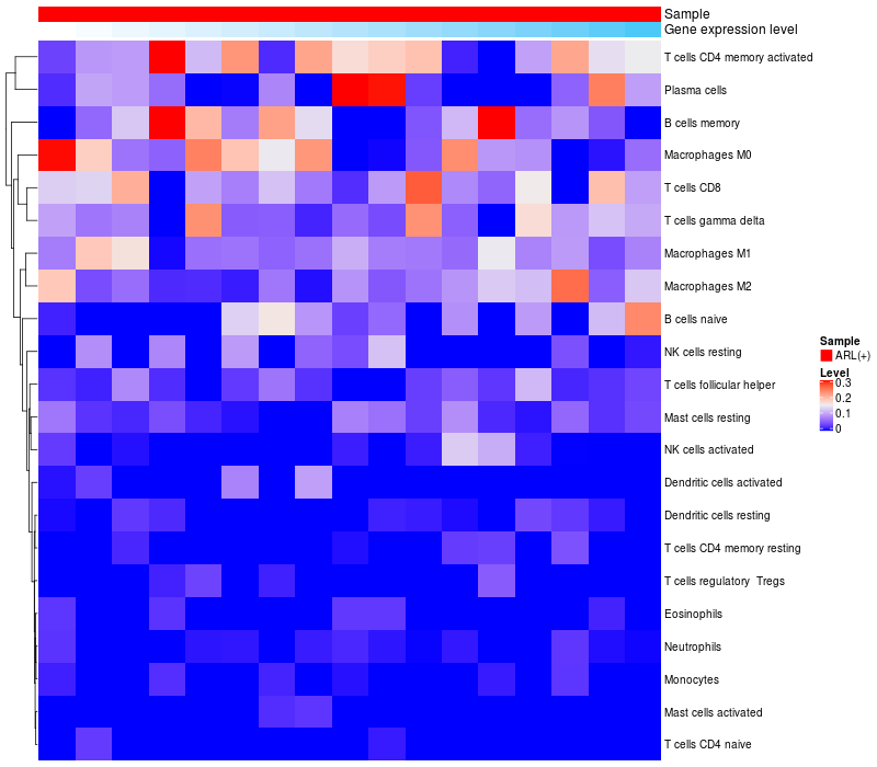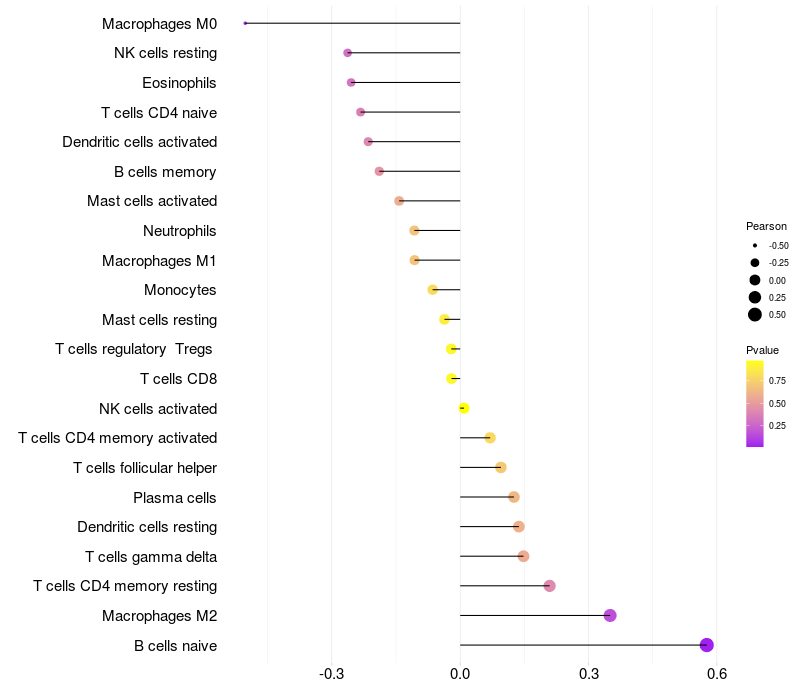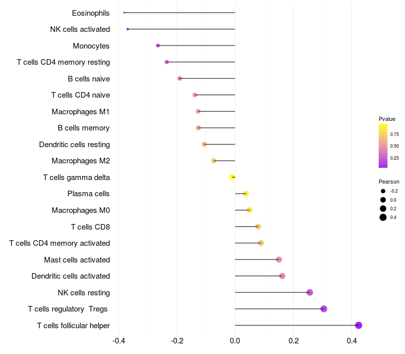 Relationship between gene expression and immune infiltrating cell level
