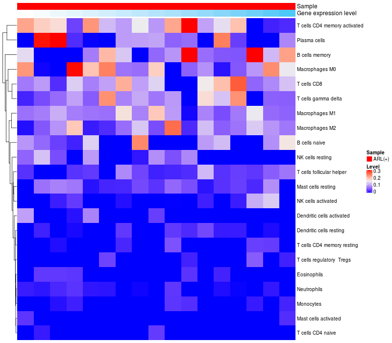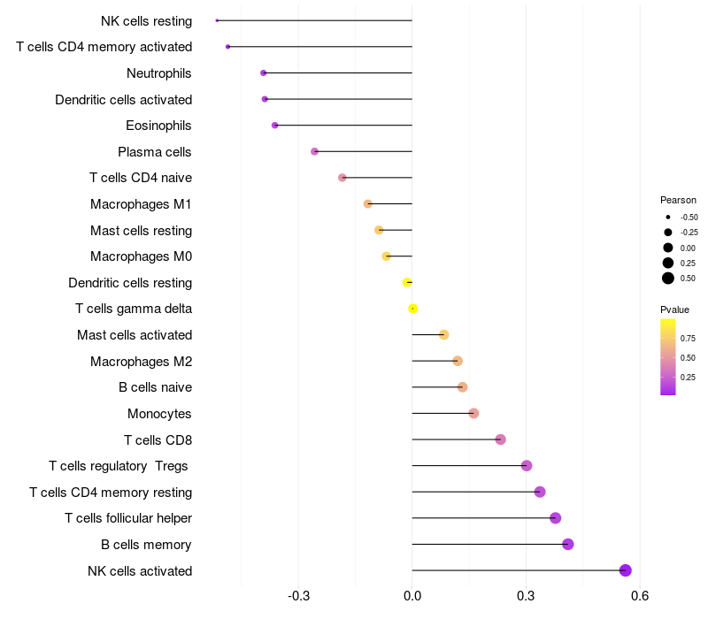Relationship between gene expression and immune infiltrating cell level