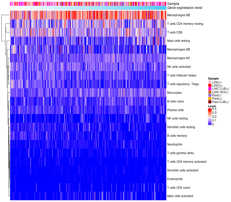 Relationship between gene expression and immune infiltrating cell level