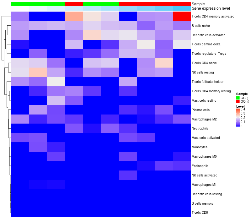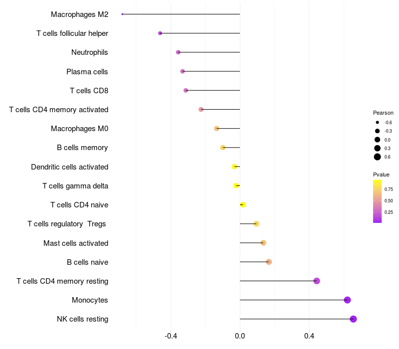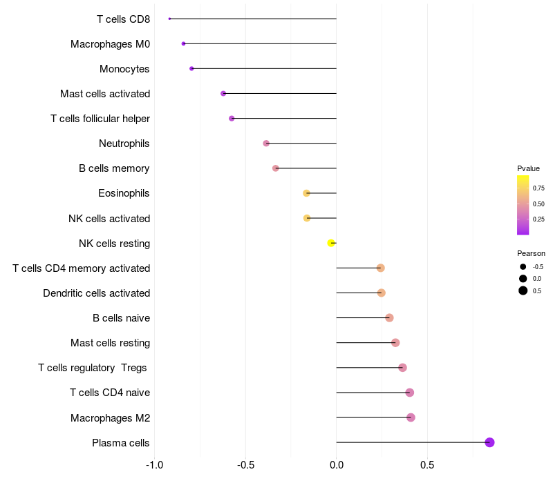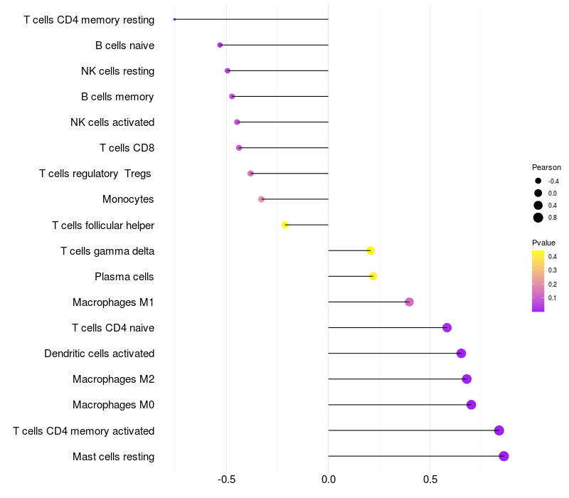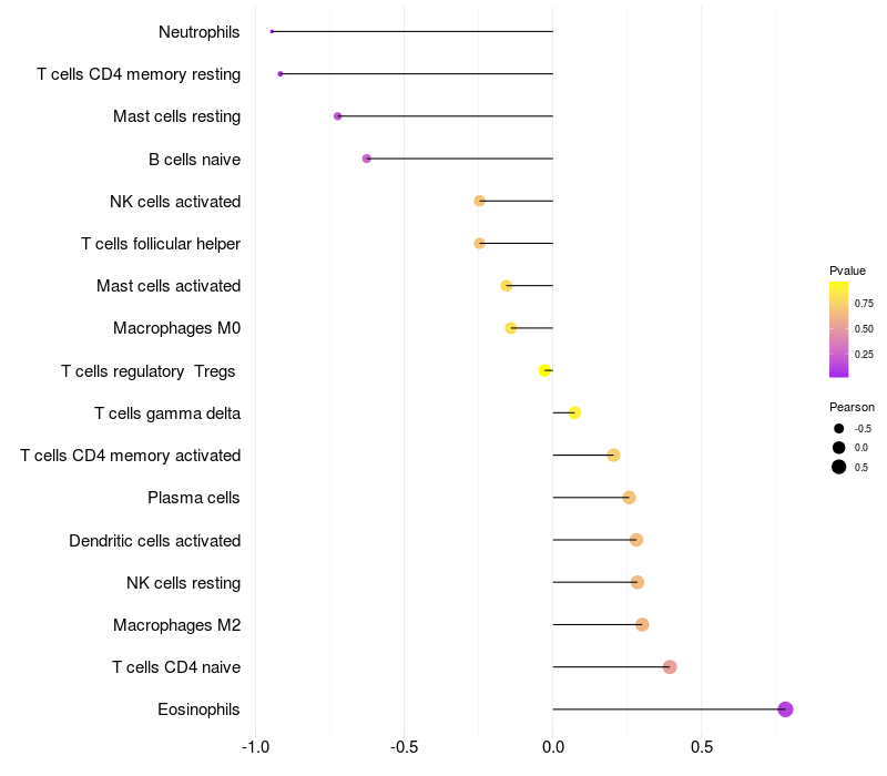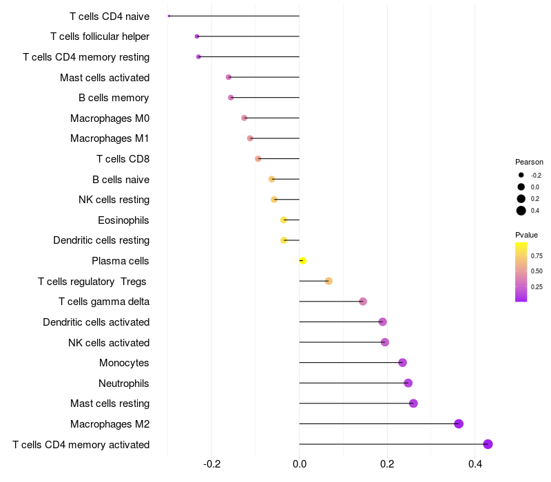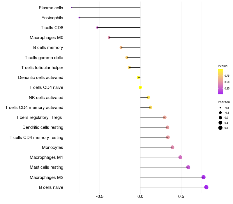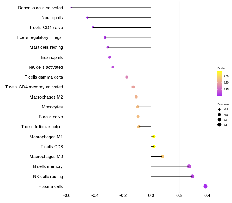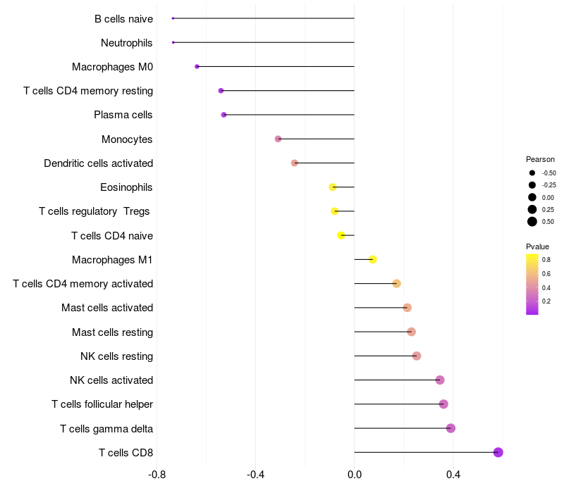 Lollipop of RAP1GDS1 expression and immune infiltrating cell level correlation result in EBV+ samples