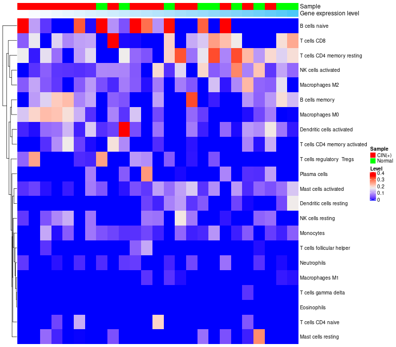 Normal (10), Cervical intraepithelial neoplasia (HPV+)(15) |