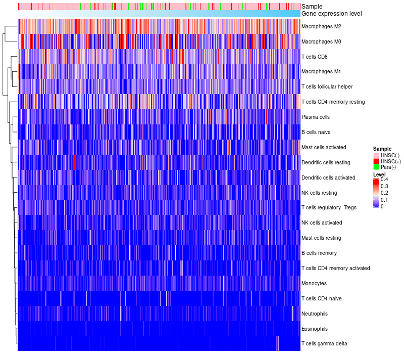 Head and Neck squamous cell carcinoma(HPV-)(483),Head and Neck squamous cell carcinoma(HPV+)(39),Paracancerous(HPV-)(44) |