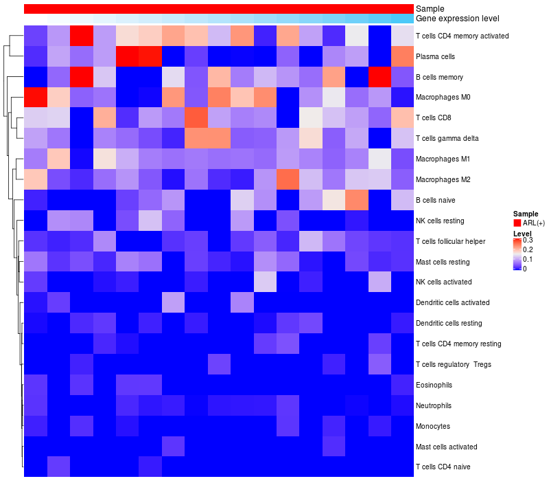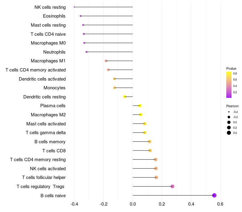 Relationship between gene expression and immune infiltrating cell level