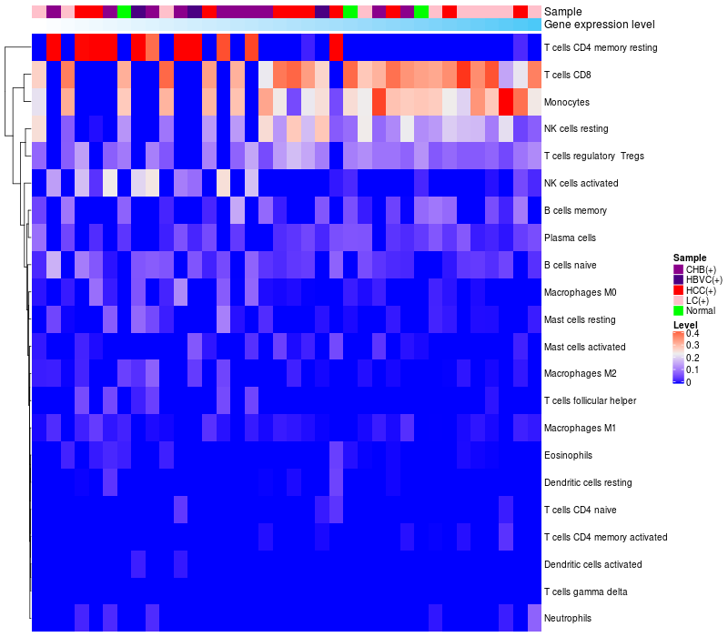 Liver hepatocellular carcinoma HCV (HBV+)(86), Liver hepatocellular carcinoma HCV (HBV-)(19), Liver hepatocellular carcinoma (HBV+)(209), Liver hepatocellular carcinoma (HBV+)(60), Paracancerous HCV (HBV+)(4), Paracancerous (HBV-)(28), Paracancerous (HBV+)(18) |