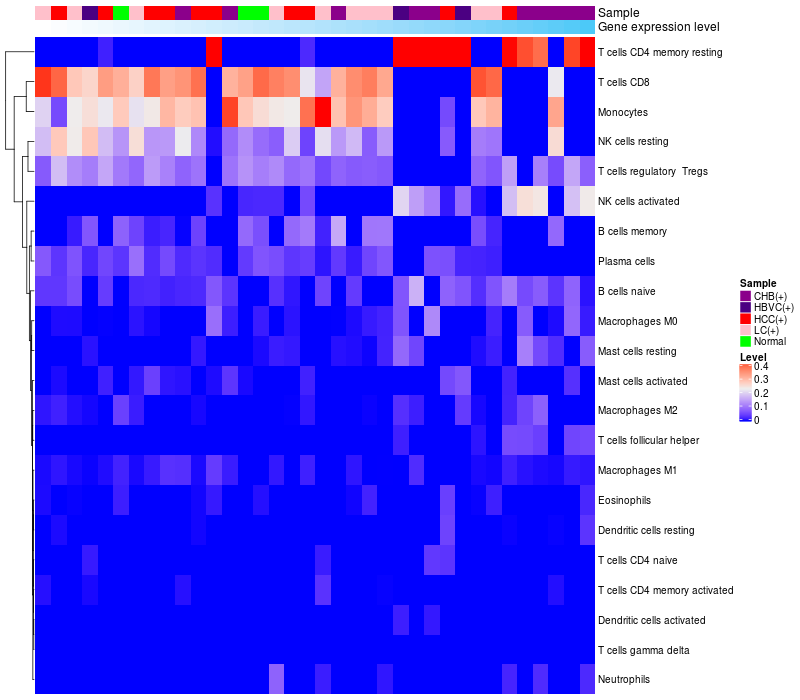 Liver hepatocellular carcinoma HCV (HBV+)(86), Liver hepatocellular carcinoma HCV (HBV-)(19), Liver hepatocellular carcinoma (HBV+)(209), Liver hepatocellular carcinoma (HBV+)(60), Paracancerous HCV (HBV+)(4), Paracancerous (HBV-)(28), Paracancerous (HBV+)(18) |