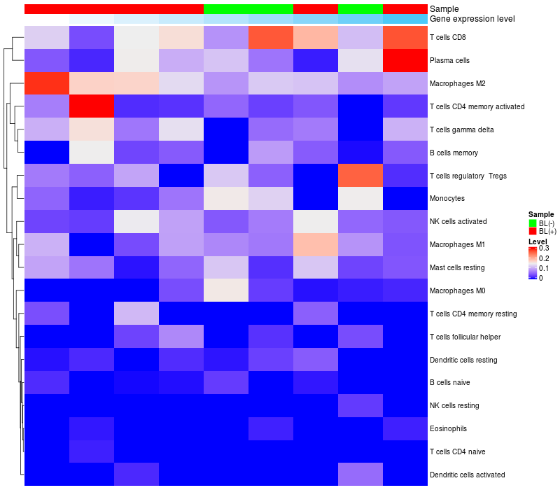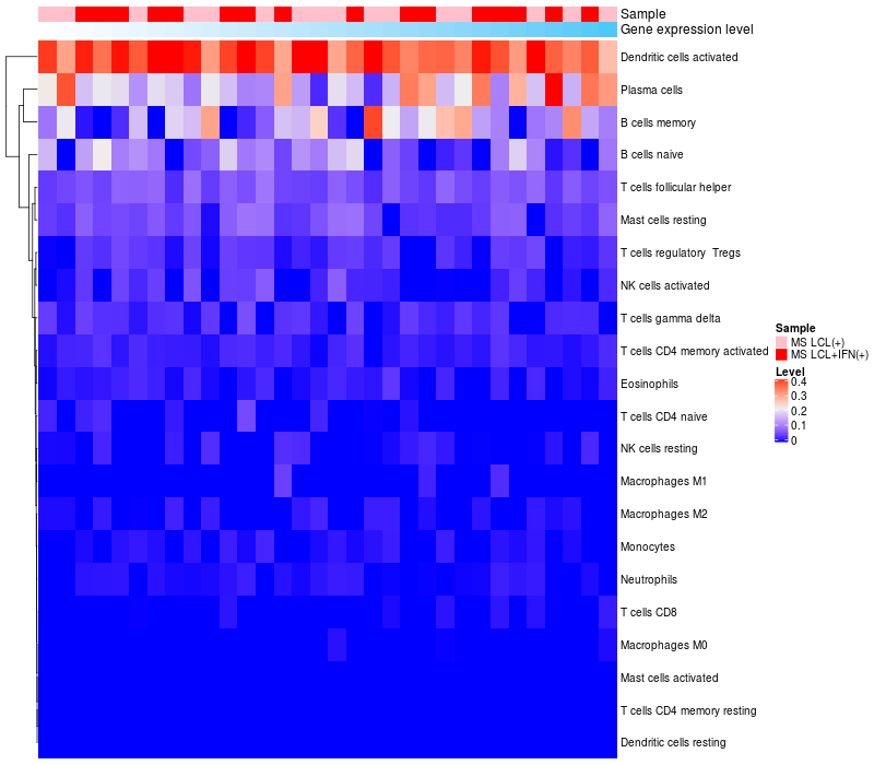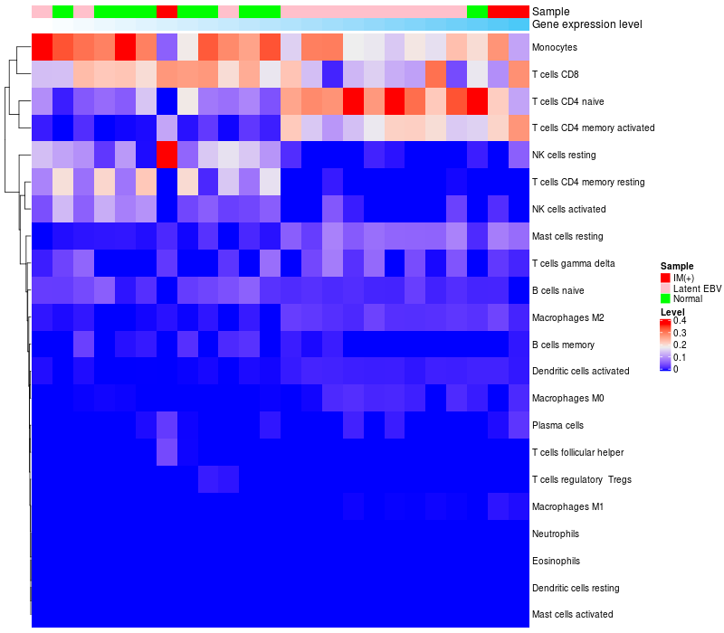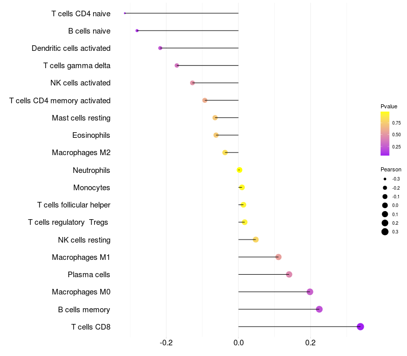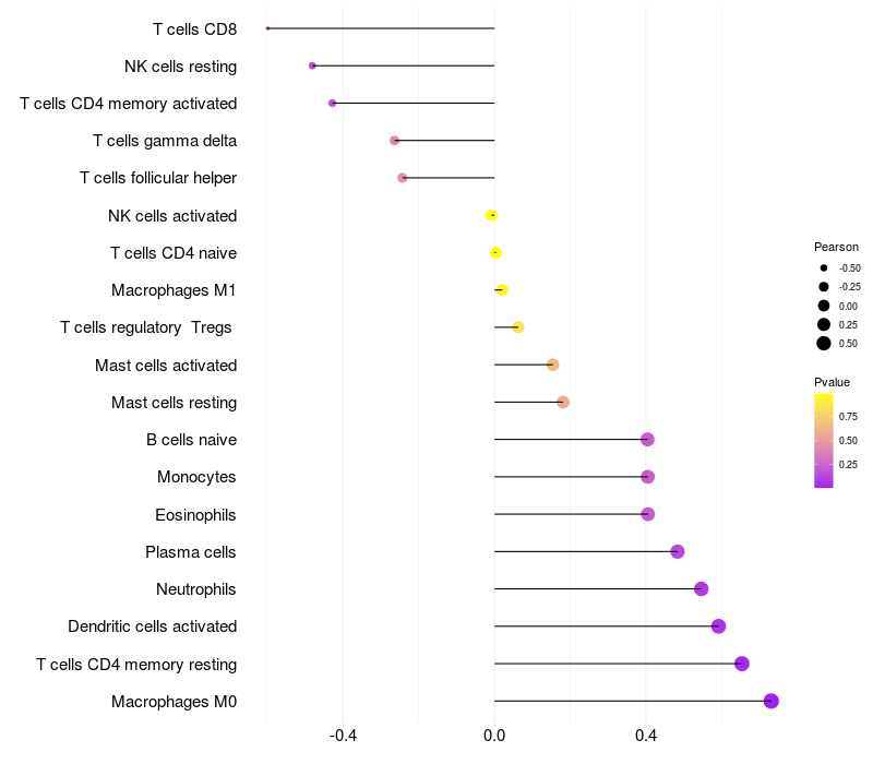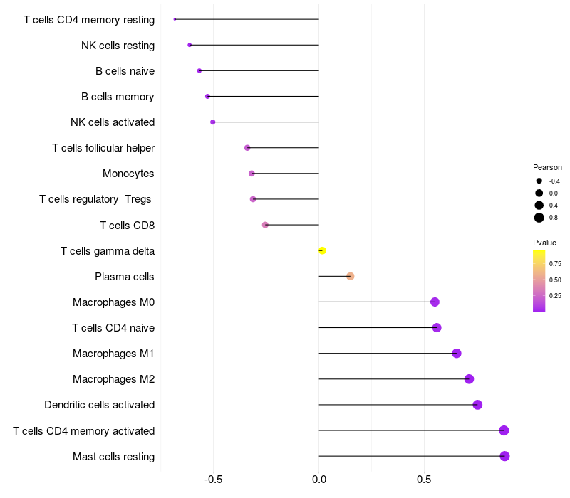 Lollipop of RBM44 expression and immune infiltrating cell level correlation result in EBV+ samples