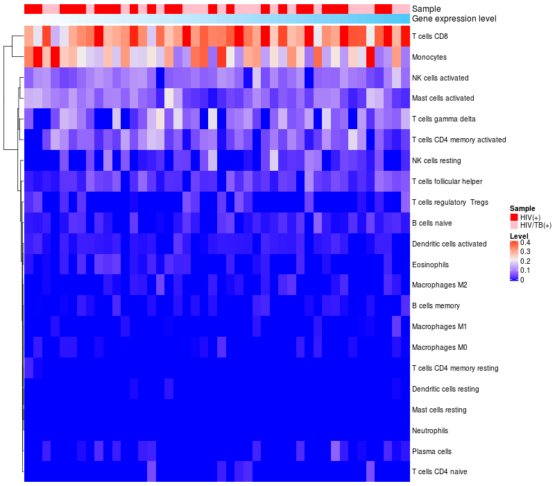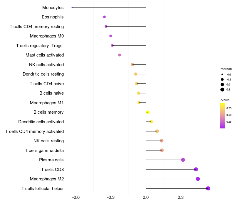 Relationship between gene expression and immune infiltrating cell level