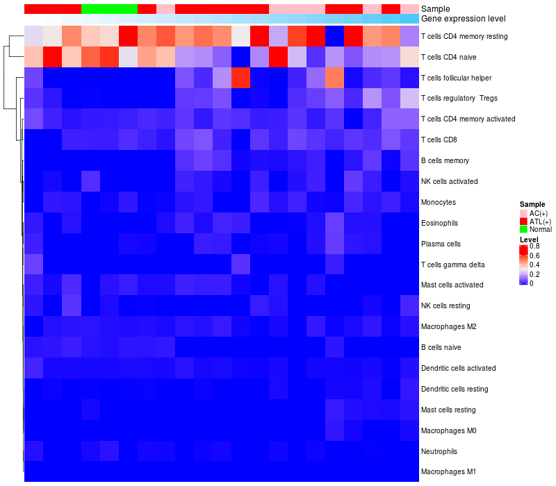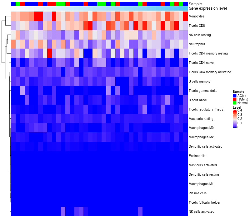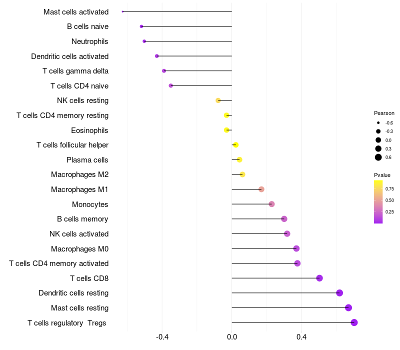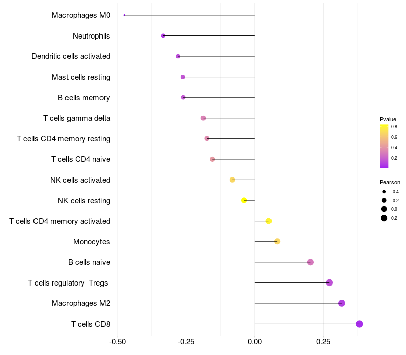 Relationship between gene expression and immune infiltrating cell level