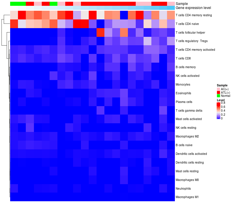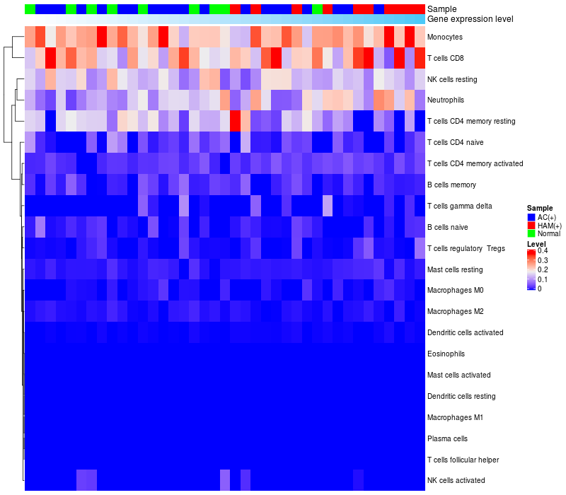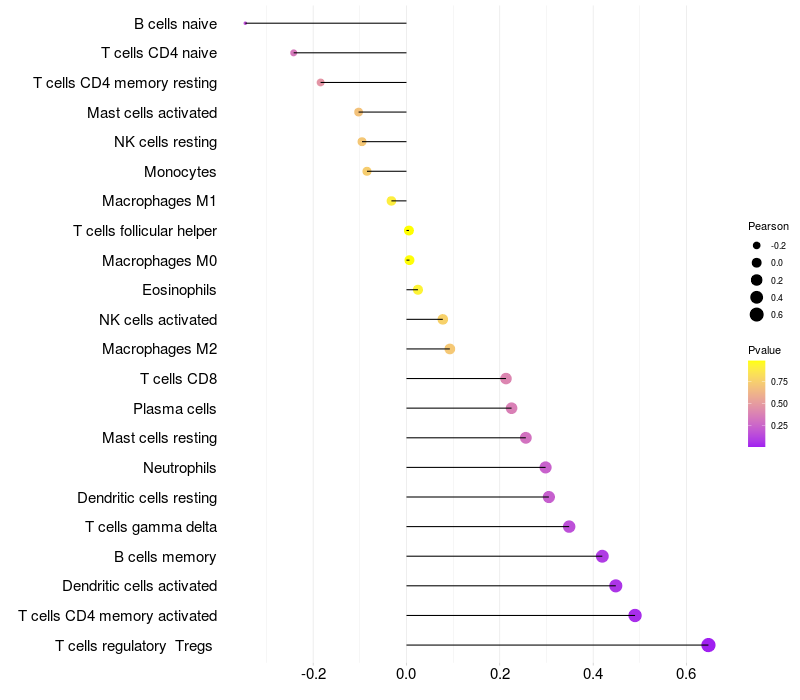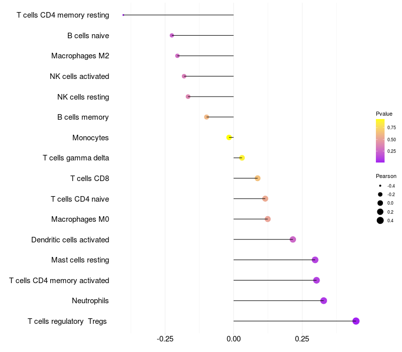 Relationship between gene expression and immune infiltrating cell level