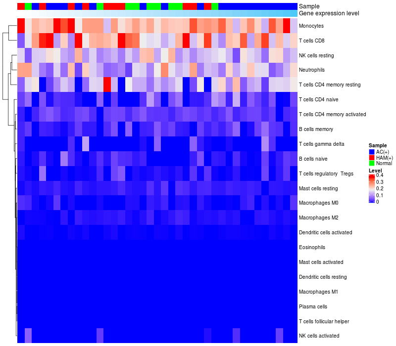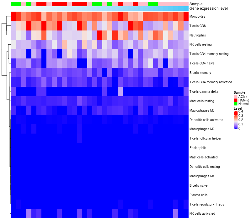 Relationship between gene expression and immune infiltrating cell level