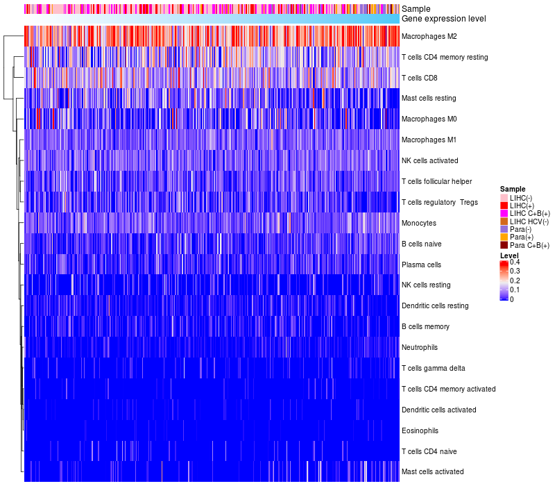 Relationship between gene expression and immune infiltrating cell level