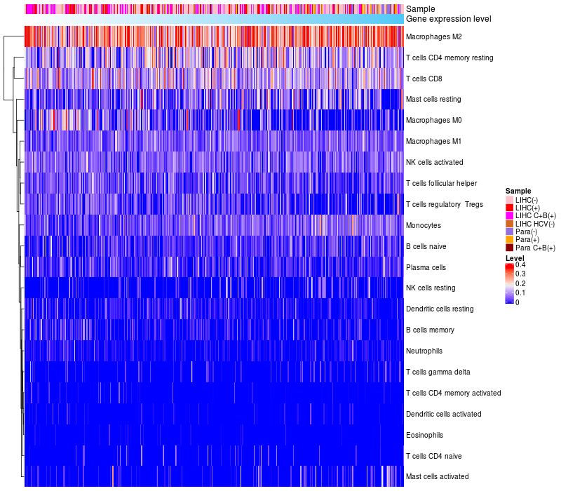 Relationship between gene expression and immune infiltrating cell level