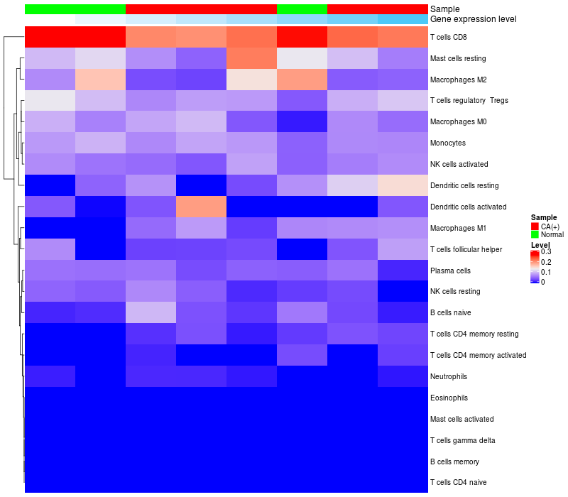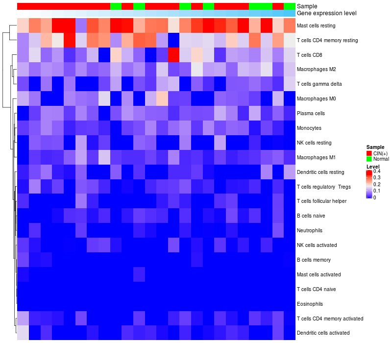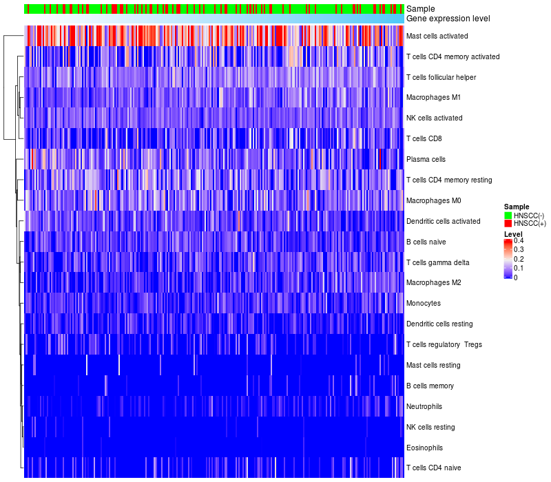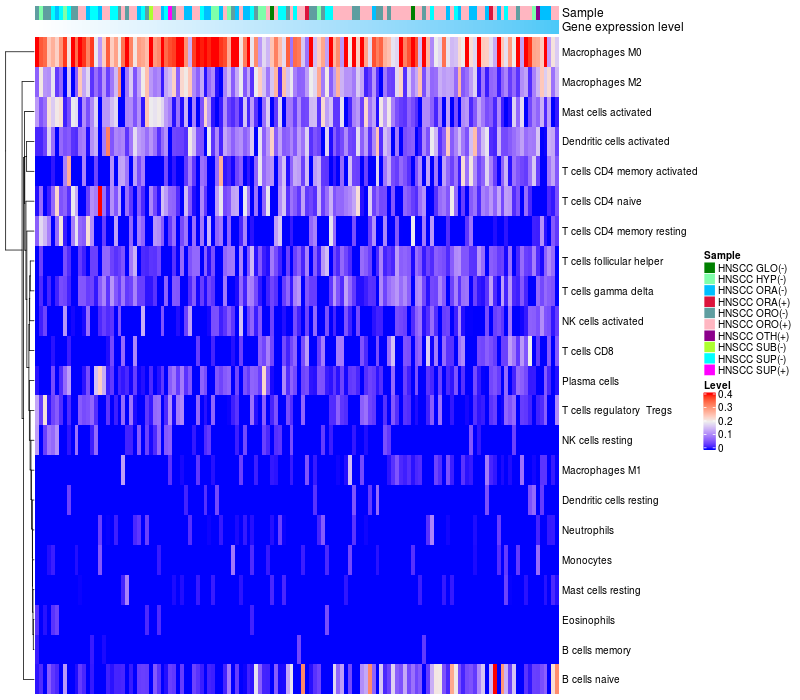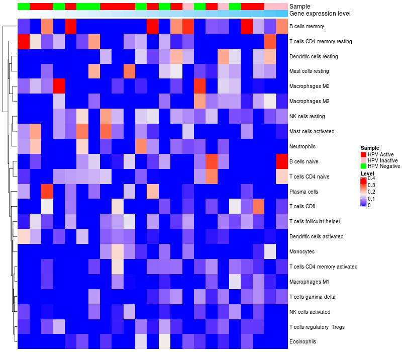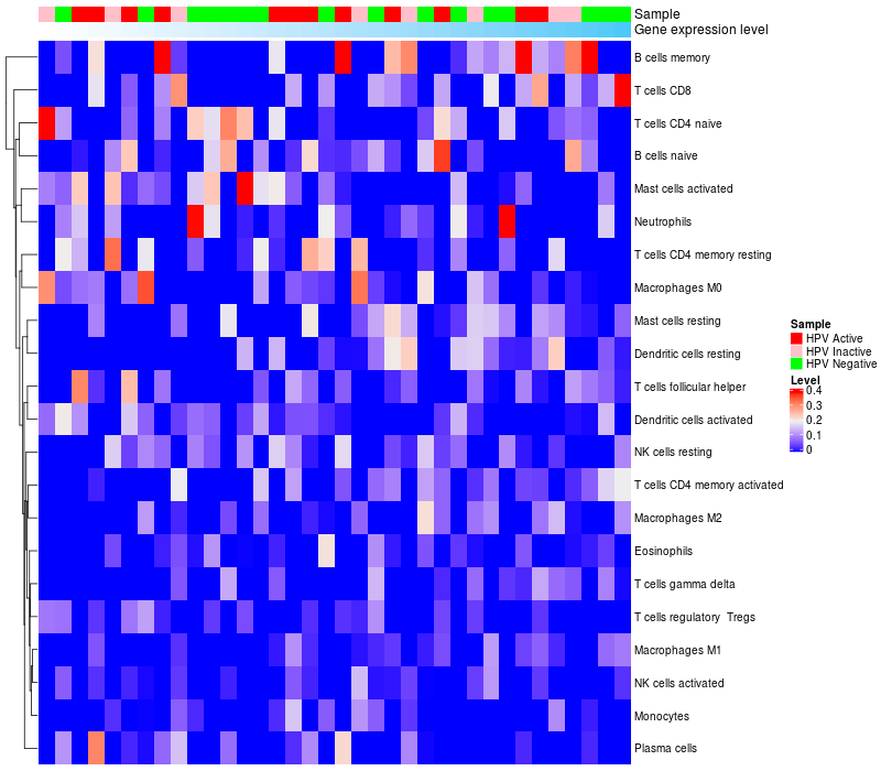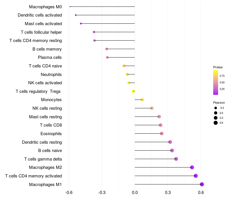 Lollipop of RGS18 expression and immune infiltrating cell level correlation result in HPV+ samples