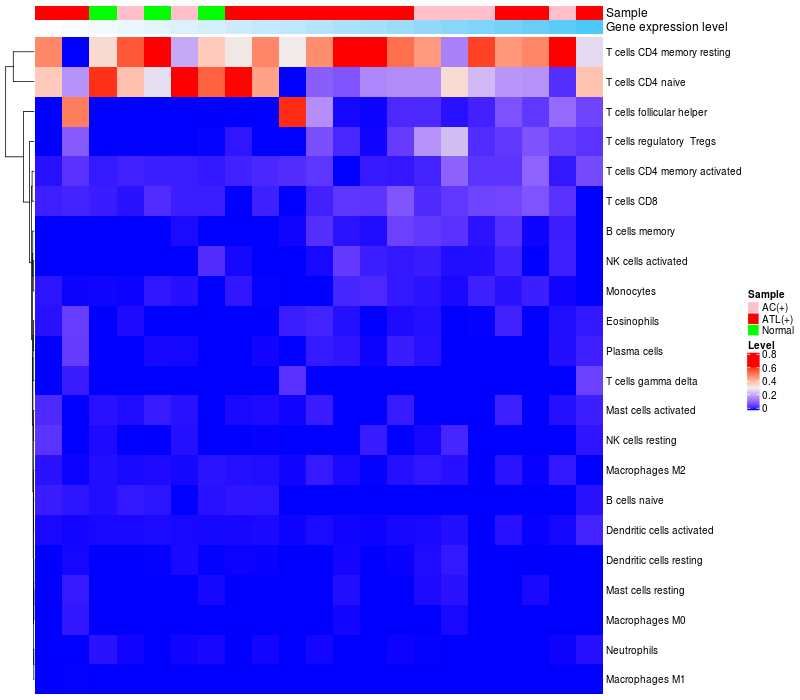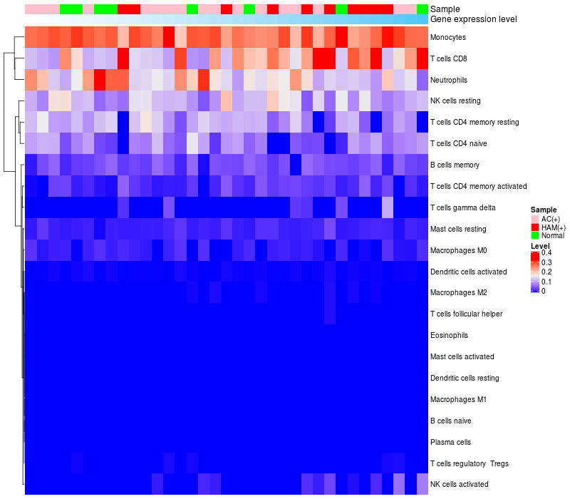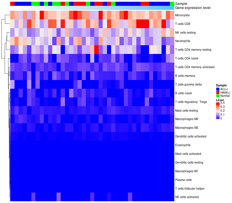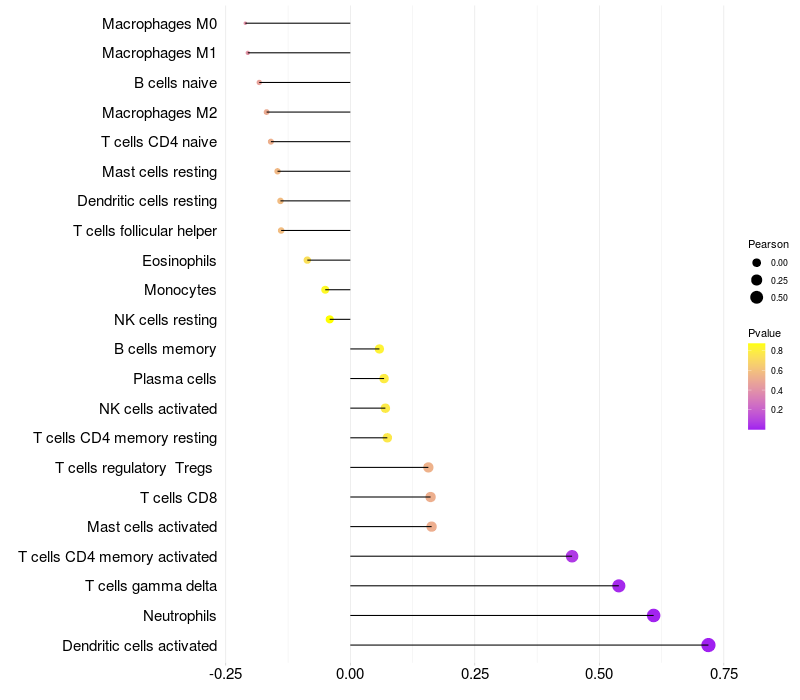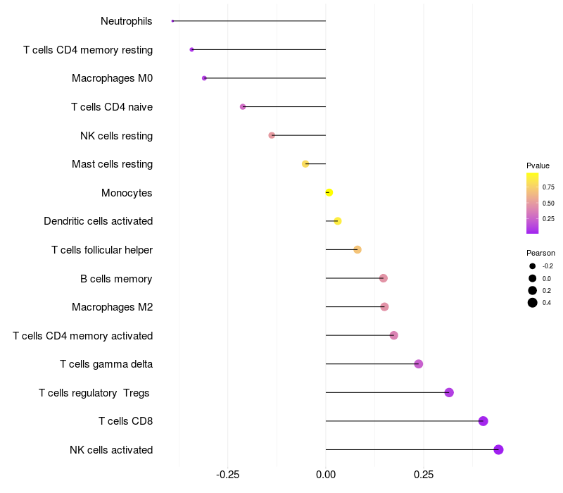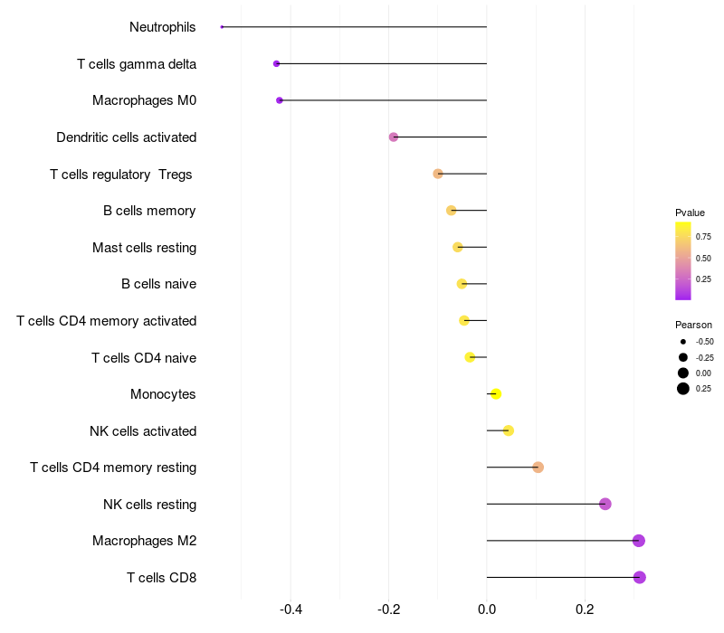 Relationship between gene expression and immune infiltrating cell level